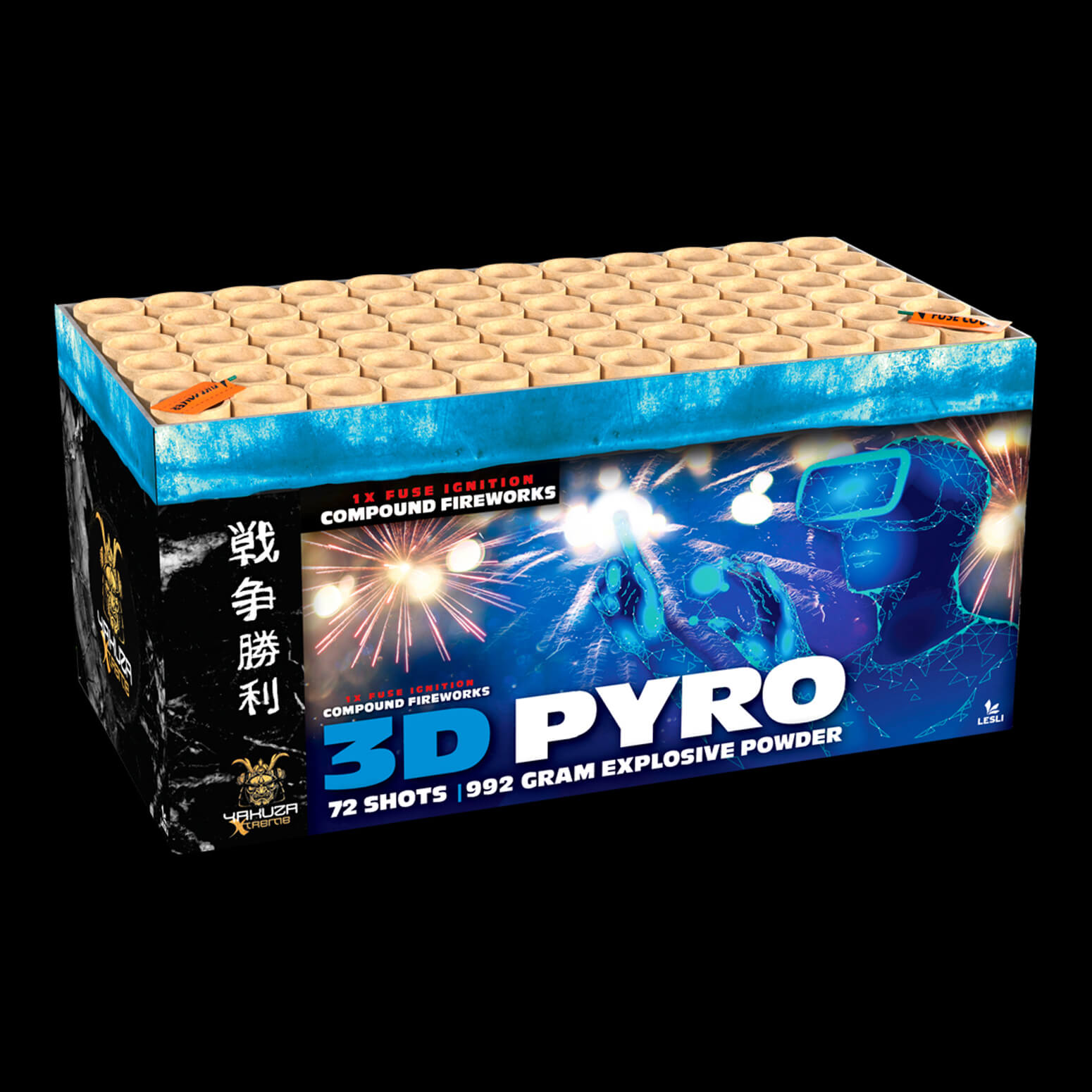 Batteriefeuerwerk 3D Pyro – Stellen Sie sich vor, Sie wären in der Welt der Pyrotechnik mit diesem 72-schüssigen Compound. Flashy Schweife explodieren in Camuro Effekten mit hellen Neon Blinkern. In den zweiten Phasen scheinen die Effekte zu verschwinden und kommen dann doch wieder!- Kaliber: 25 mm
