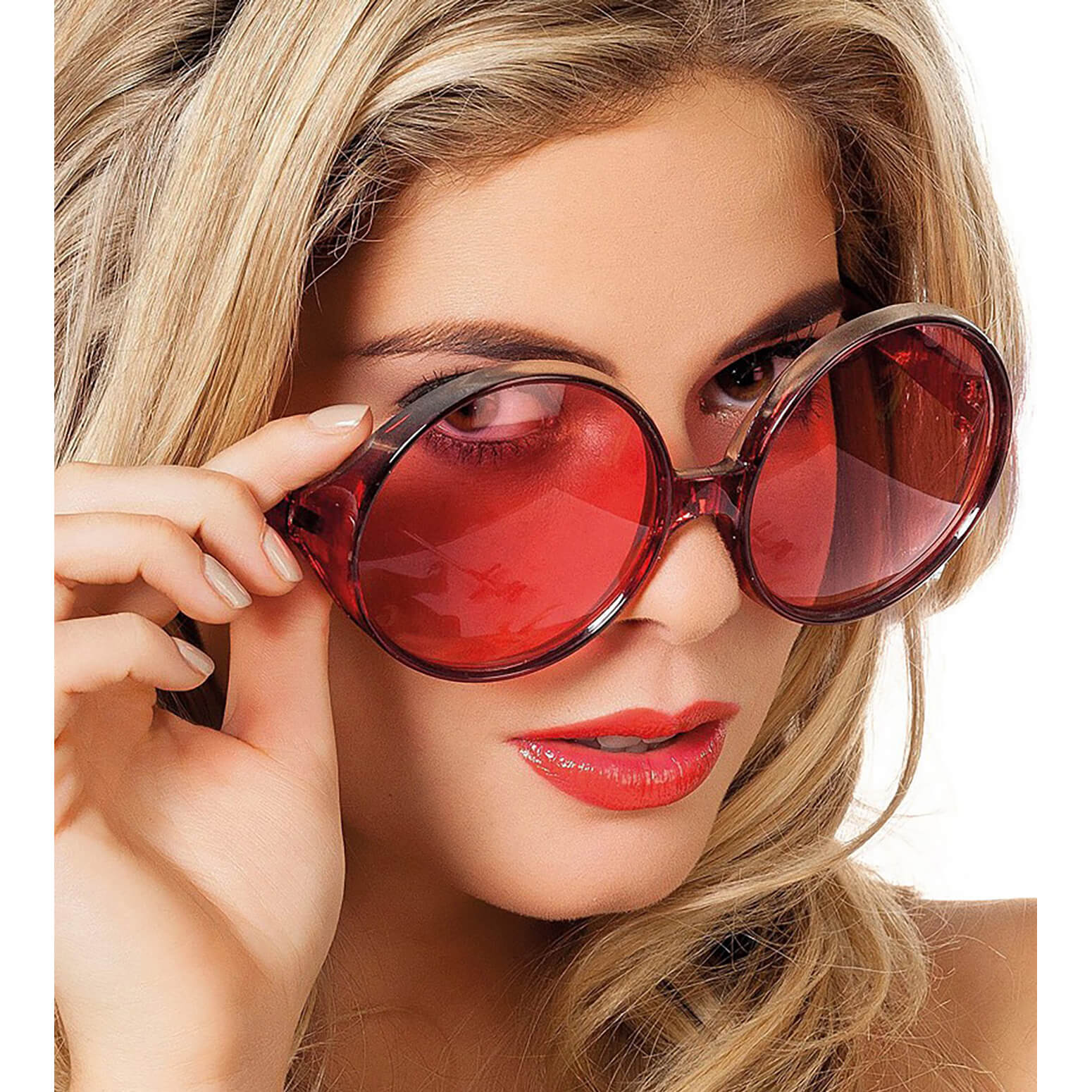 70er Jahre Runde Brille XL Partybrille mit farbigen Gläsern rot – (ARTIKEL/REFERNZ: 8714438262962/WB20006RE – Kategorie/Suche: – Hersteller: Wilbers & Wilbers)