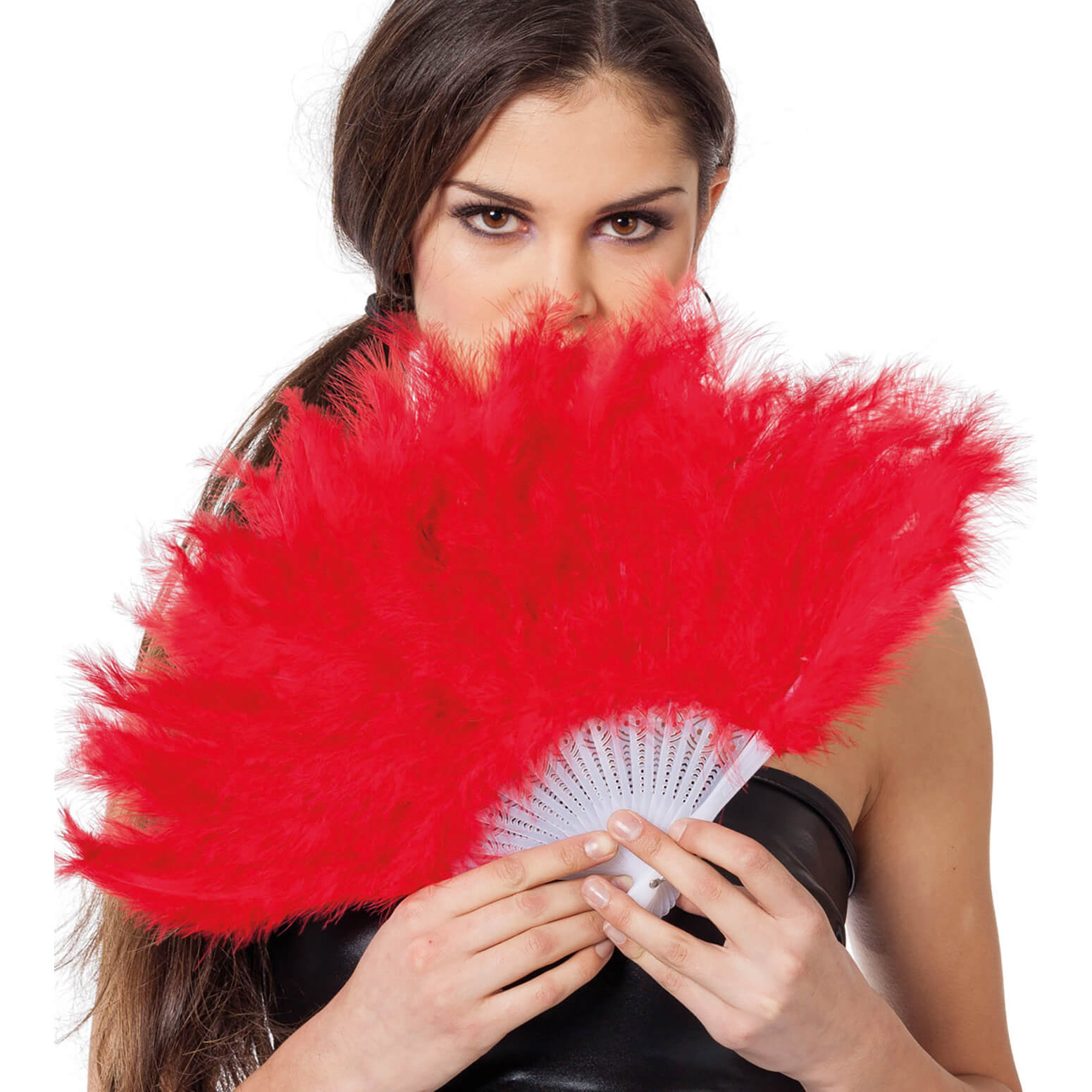Showgirl / Saloongirl Federfächer Deluxe rot