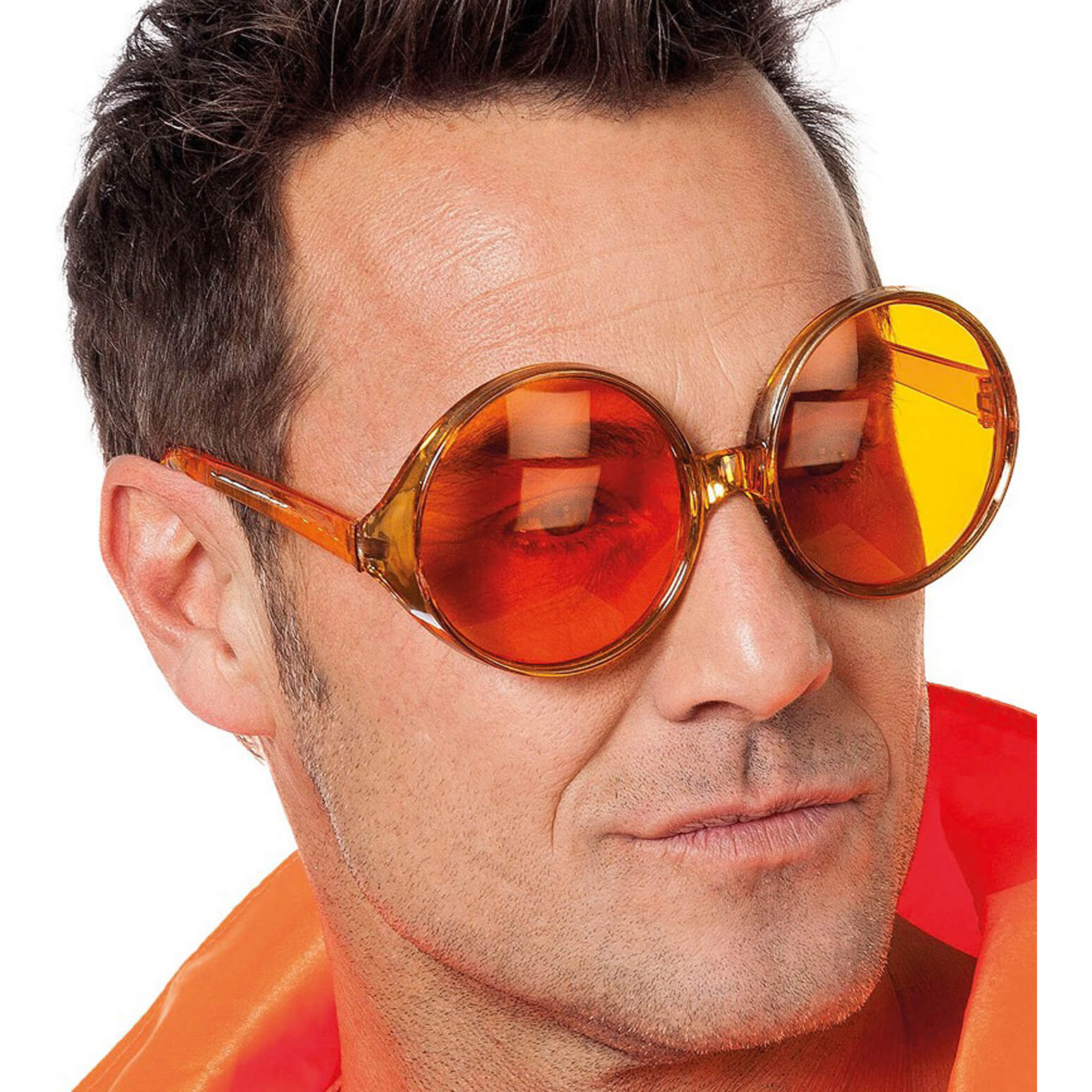 70er Jahre Runde Brille XL Partybrille mit farbigen Gläsern orange – (ARTIKEL/REFERNZ: 8714438268421/WB20006OR – Kategorie/Suche: – Hersteller: Wilbers & Wilbers)