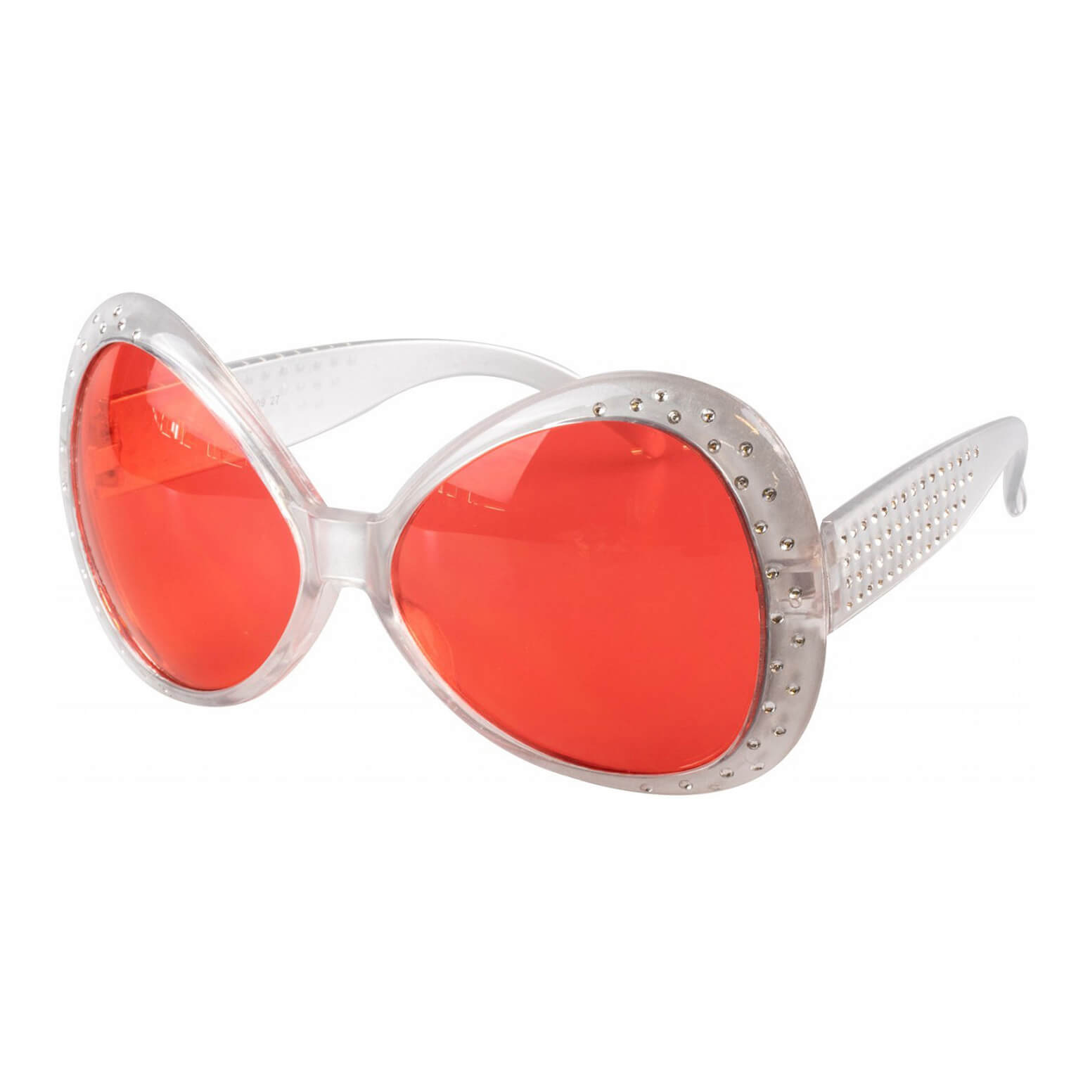 70er Jahre Butterflybrille mit Steinen Strass und farbigen Gläsern silber-rot – (ARTIKEL/REFERNZ: 8714438268872/WB20009SI – Kategorie/Suche: – Hersteller: Wilbers & Wilbers)