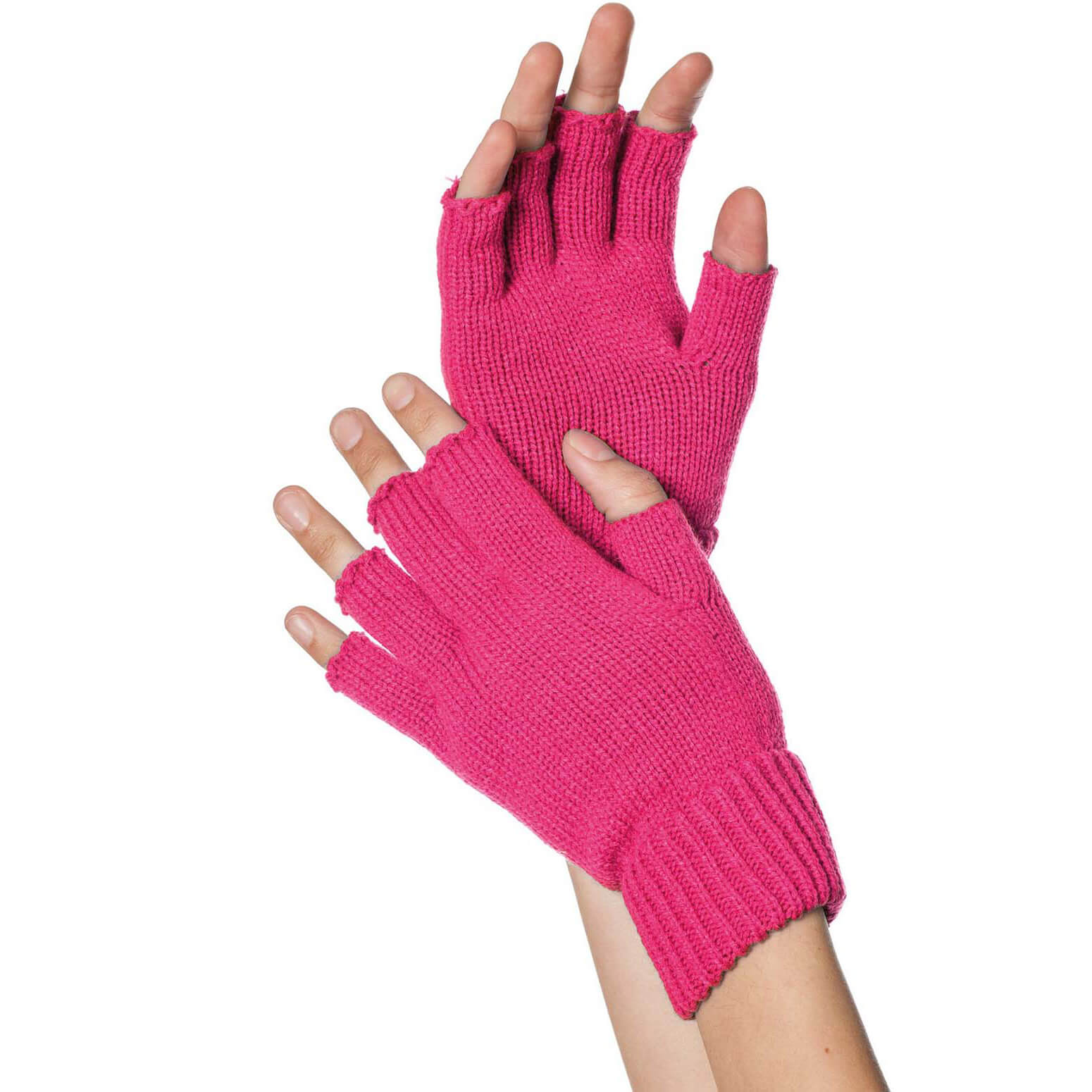 Handschuhe kurz fingerlos Strickhandschuhe Deluxe einfarbig neonpink