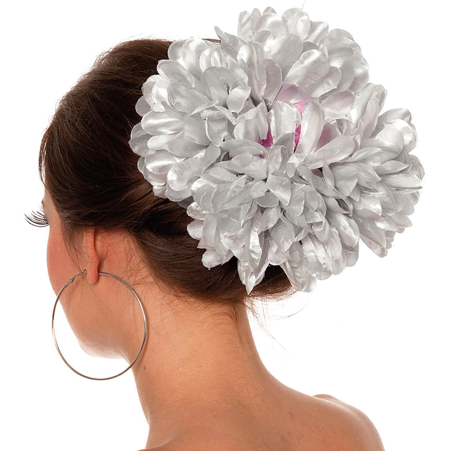 Hawaii / Blumen Haarclip mit Blume Haarklammer Deluxe silber
