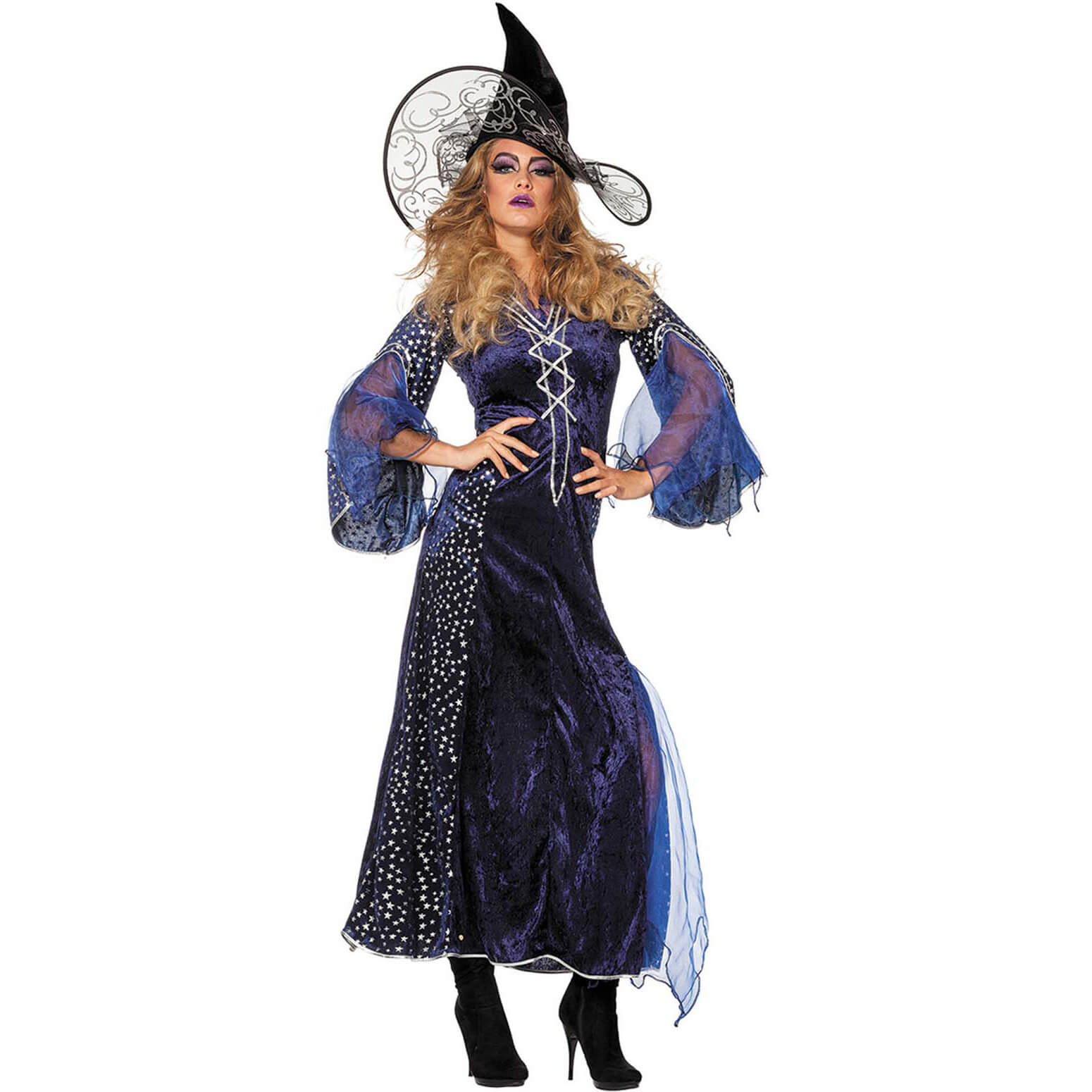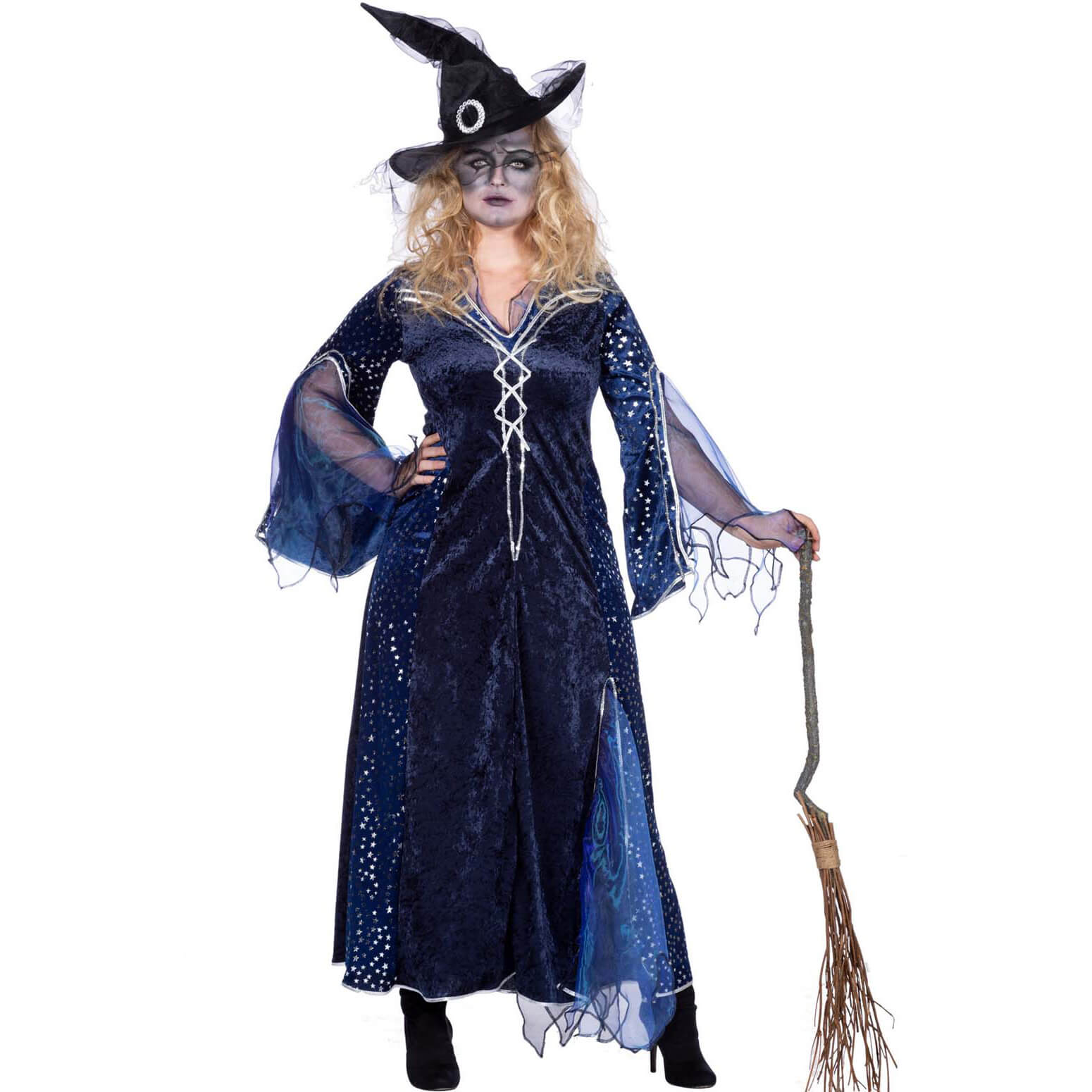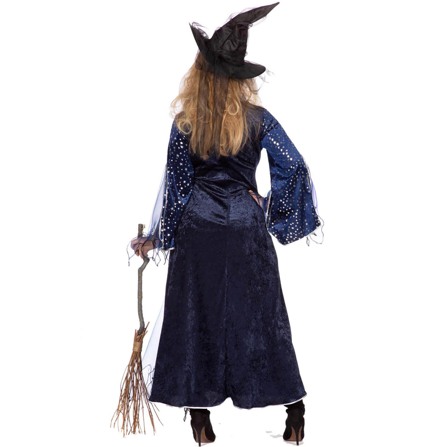 Hexe Zauberin Merlin Kostüm Kleid lang Deluxe aus Samt mit Sternen blau