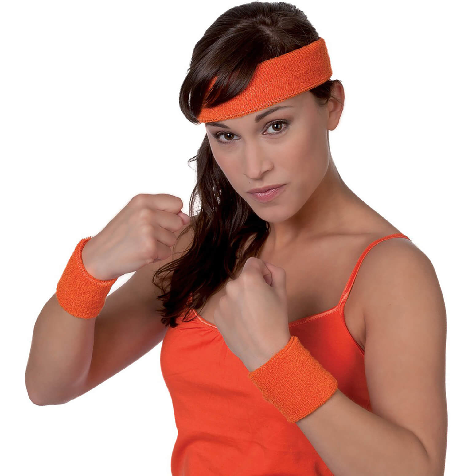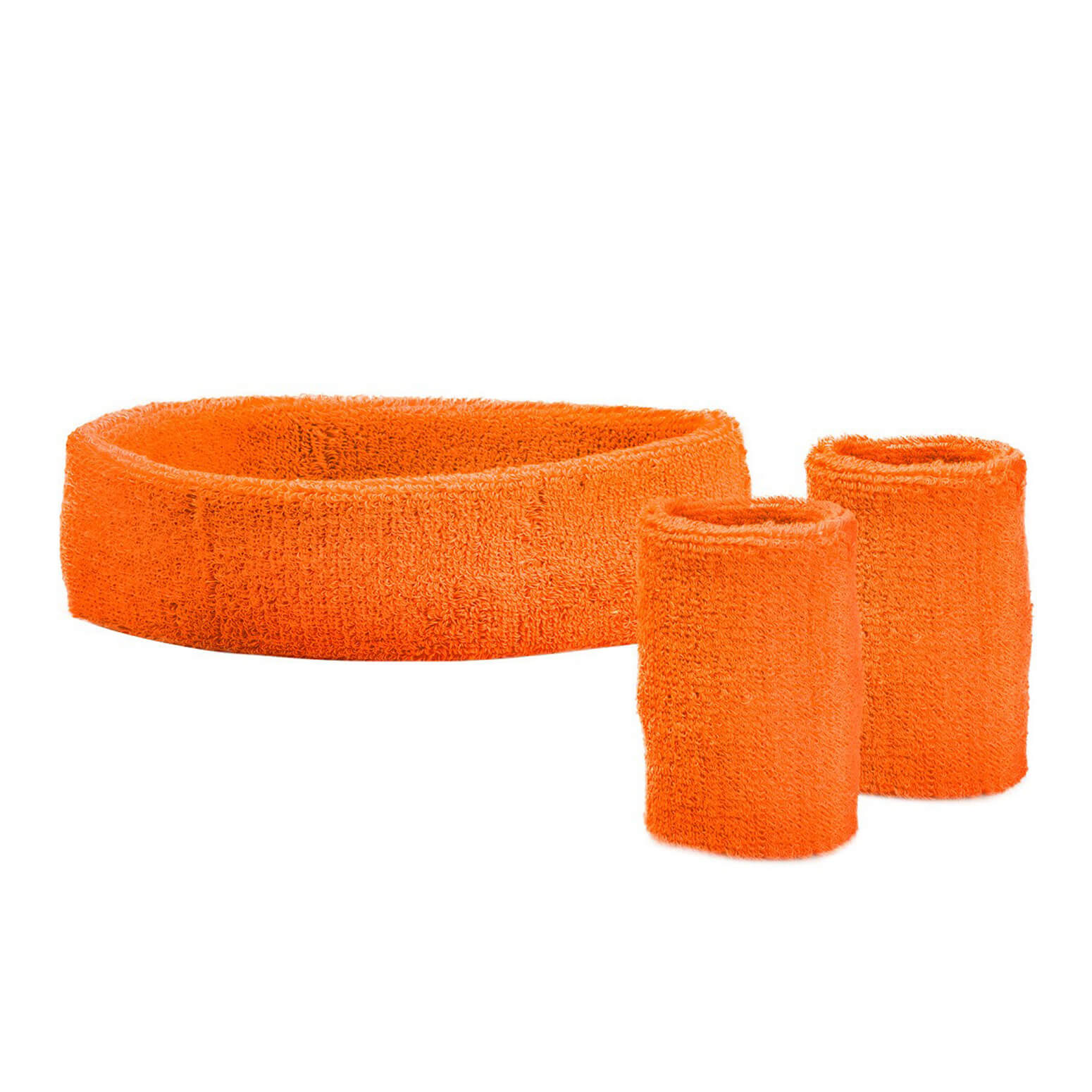 80er Jahre Aerobic Schweißband Set Stirnband+Handgelenkschweißbänder Deluxe orange