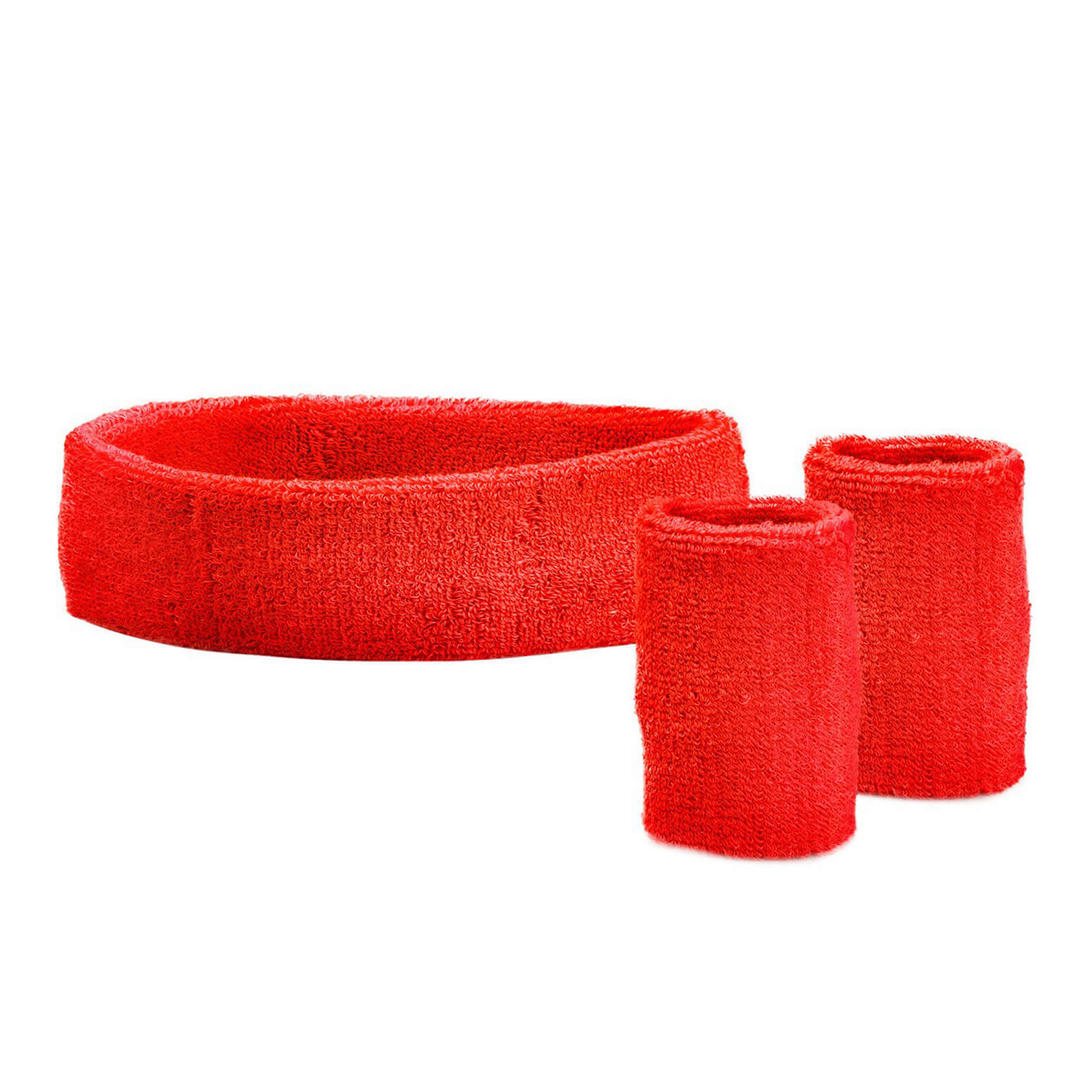80er Jahre Aerobic Schweißband Set Stirnband+Handgelenkschweißbänder Deluxe rot