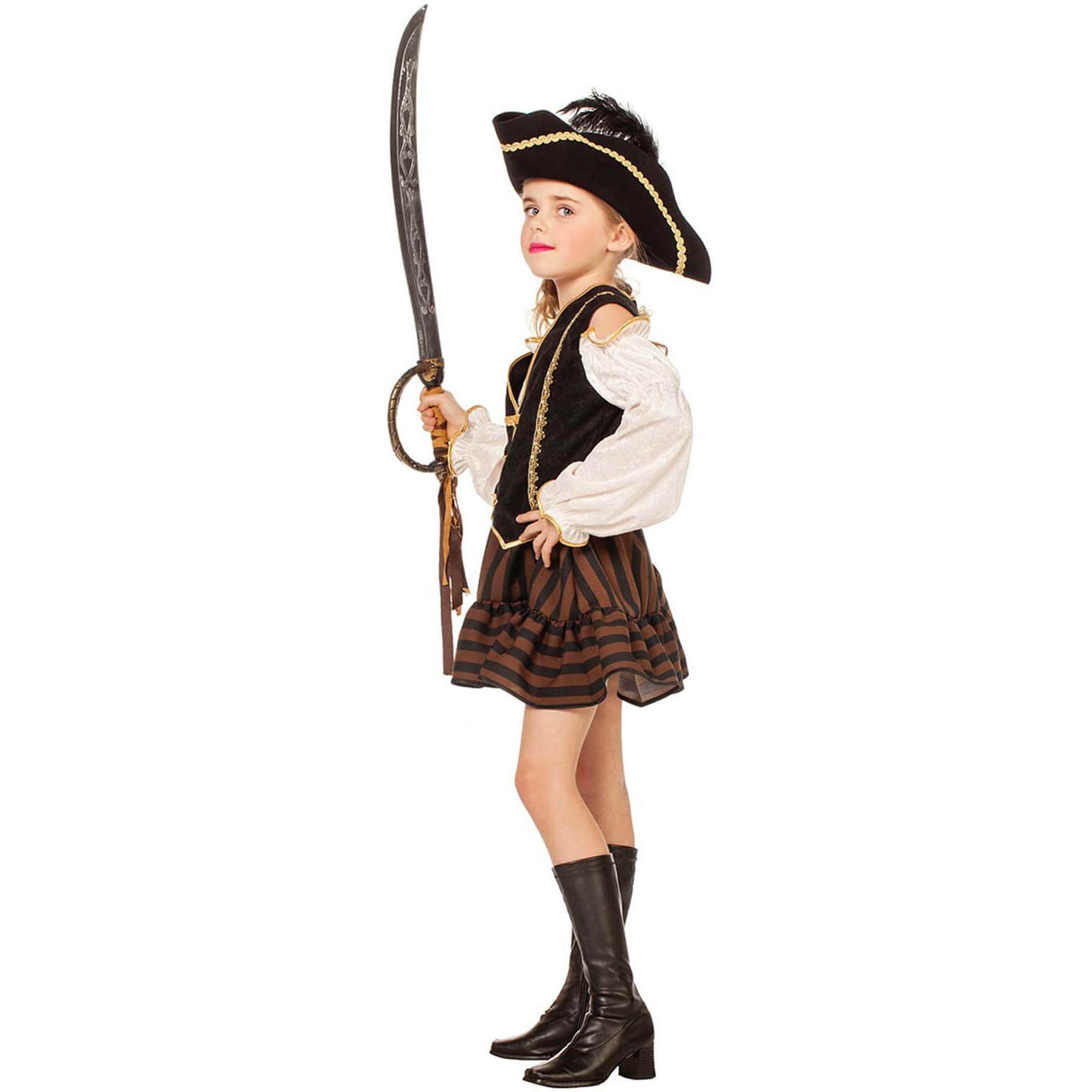 Piratin Kinderkostüm Kleid kurz braun-schwarz-gold – (ARTIKEL/REFERNZ: 8714438452110/WB3502116-8714438452127/WB3502128-8714438452134/WB3502140-8714438452141/WB3502152-8714438452158/WB3502164 – Kategorie/Suche: – Hersteller: Wilbers & Wilbers)