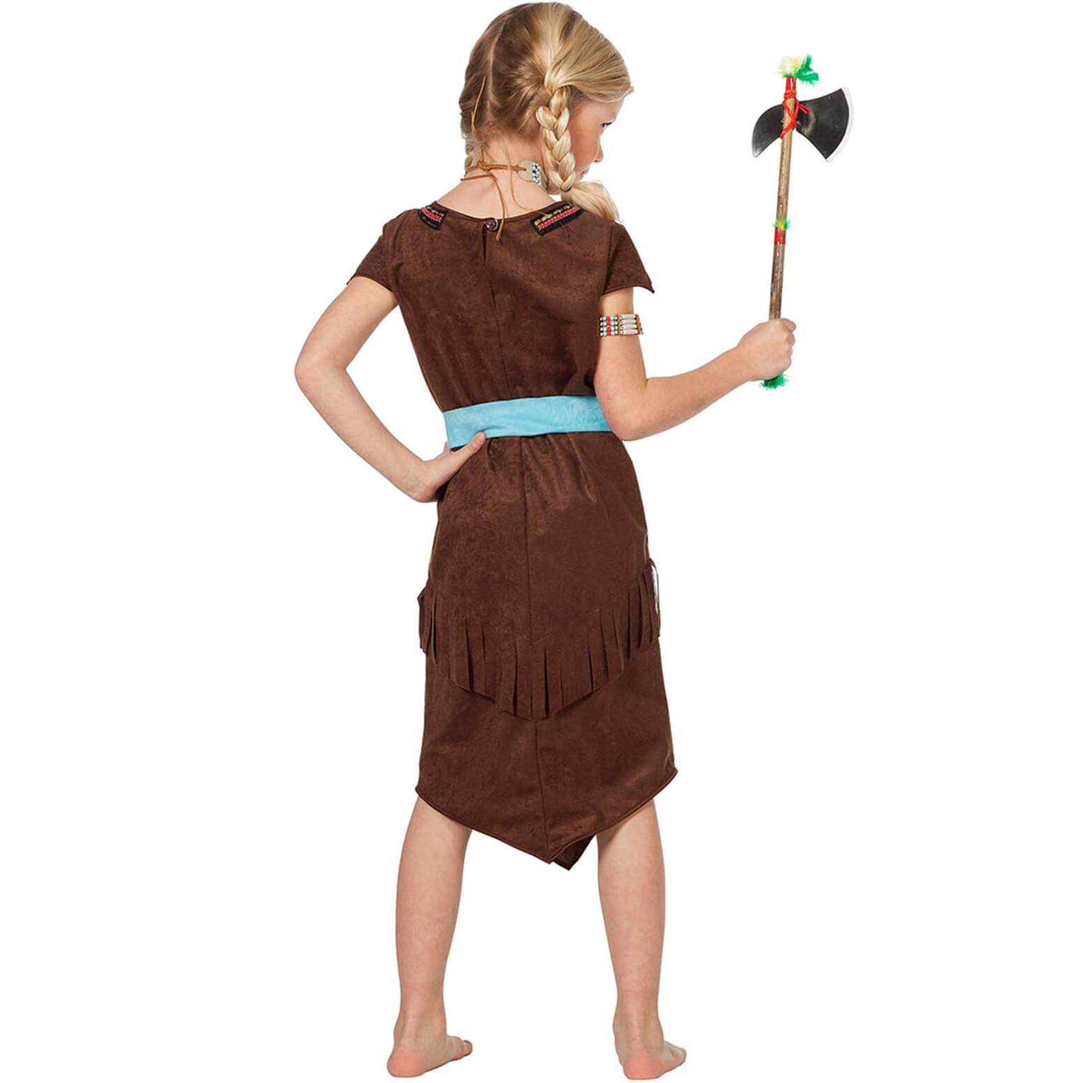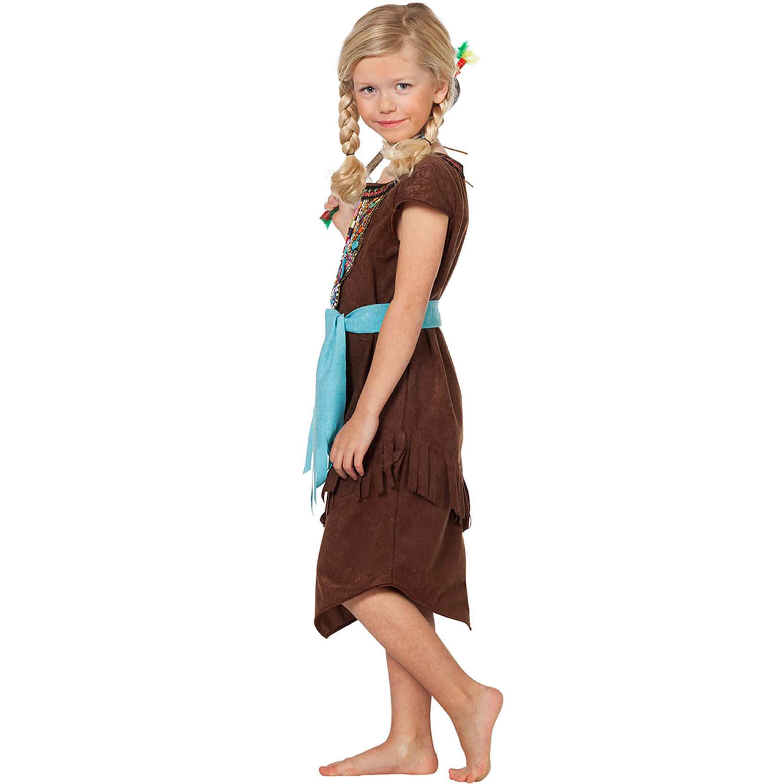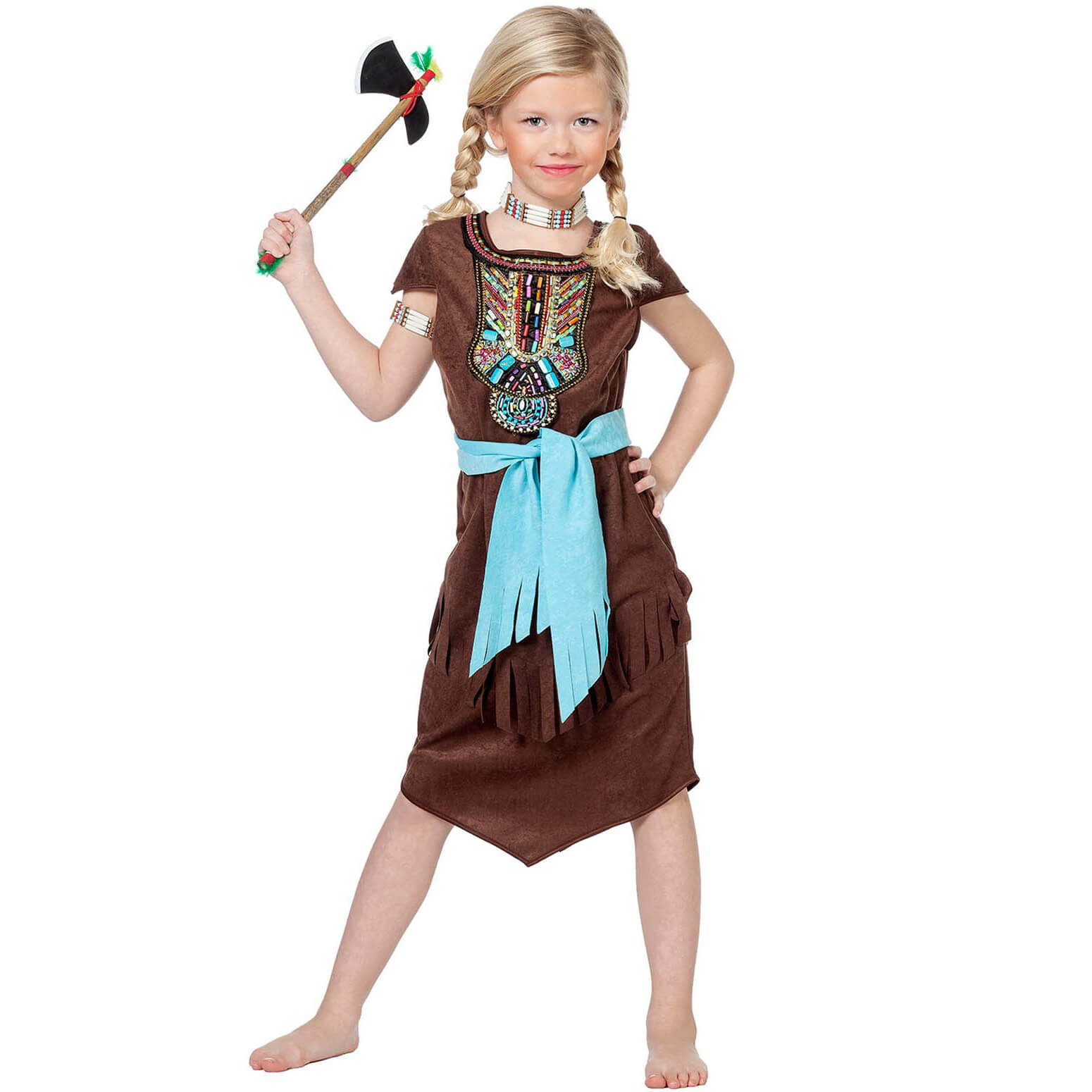 Indianerin Kinderkostüm Kleid halblang Luxus mit Perlenstickerei braun-türkis