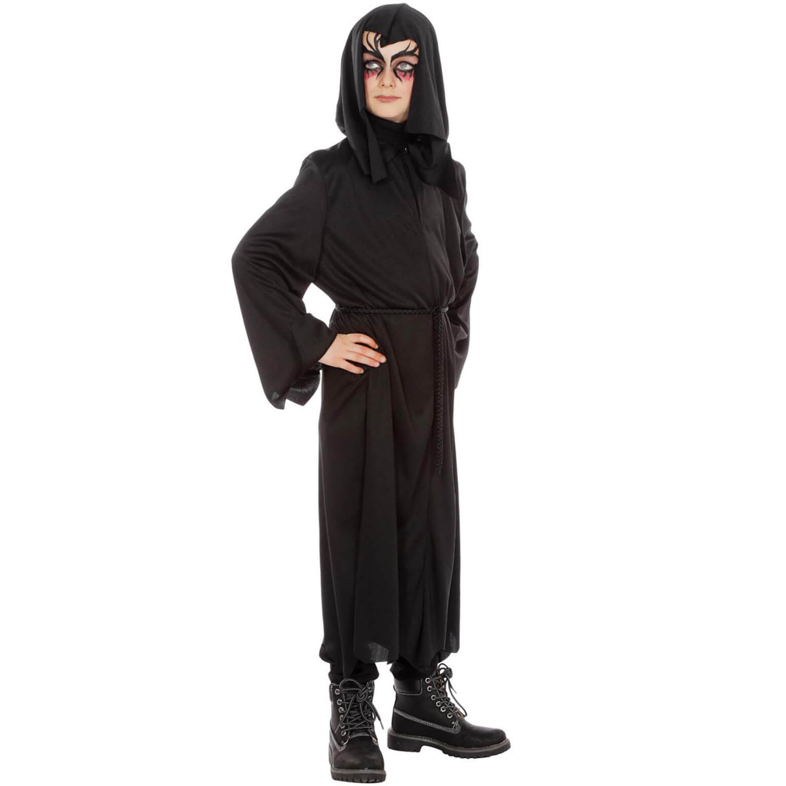 Geist / Sensenmann Kinderkostüm Robe Tunika lang Schwarzer Tod schwarz