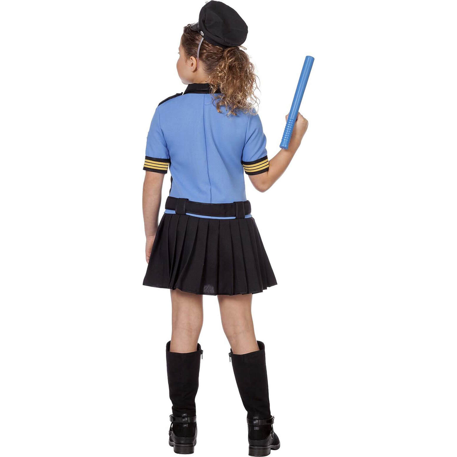 Polizistin Kinderkostüm Kleid kurz mit goldenen Borten schwarz-hellblau