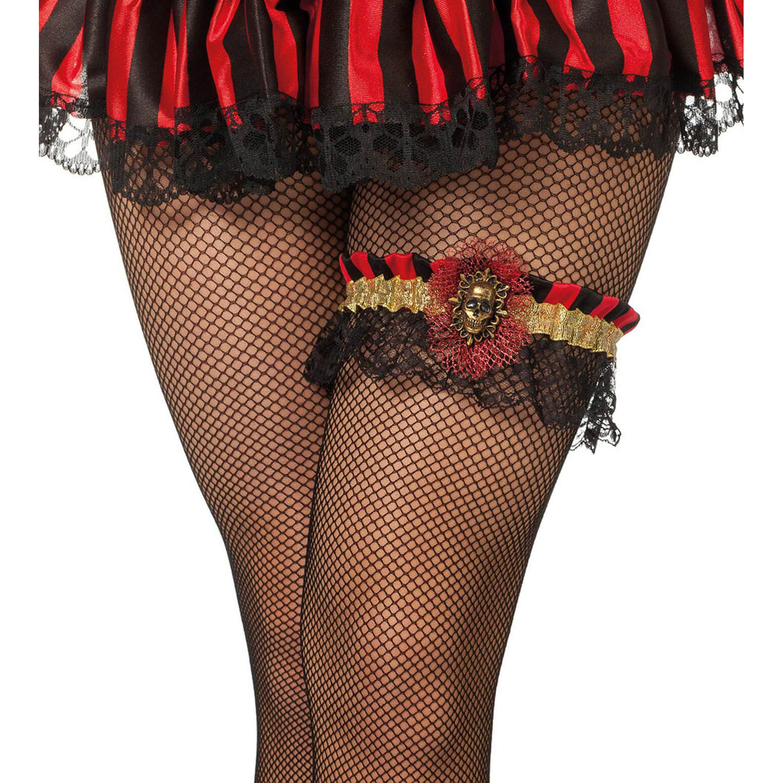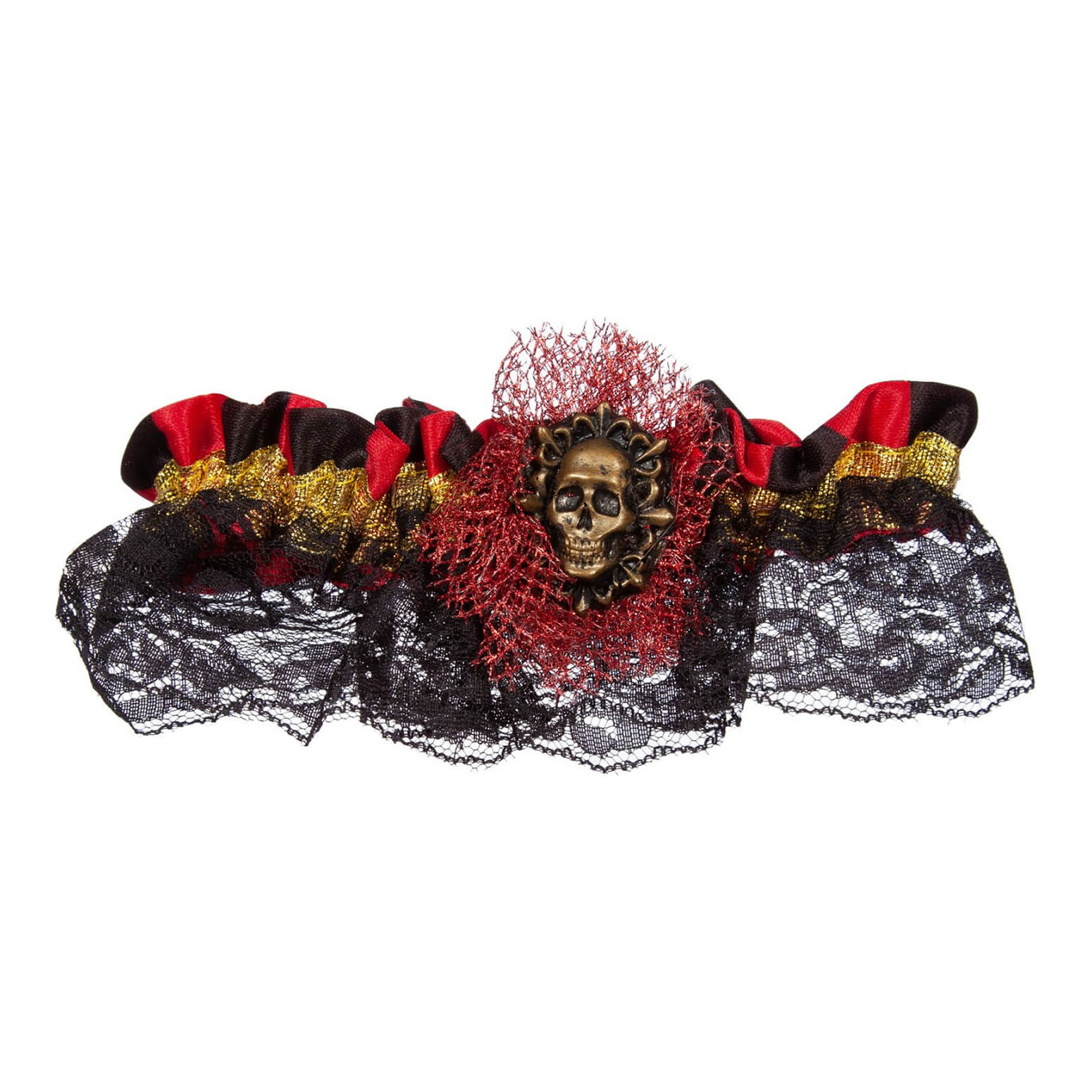 Piraten/Schädel Motivstrumpfband mit Spitze und in Messing gefasstem Totenkop rot-schwarz – (ARTIKEL/REFERNZ: 8714438595022/WB55775 – Kategorie/Suche: – Hersteller: Wilbers & Wilbers)