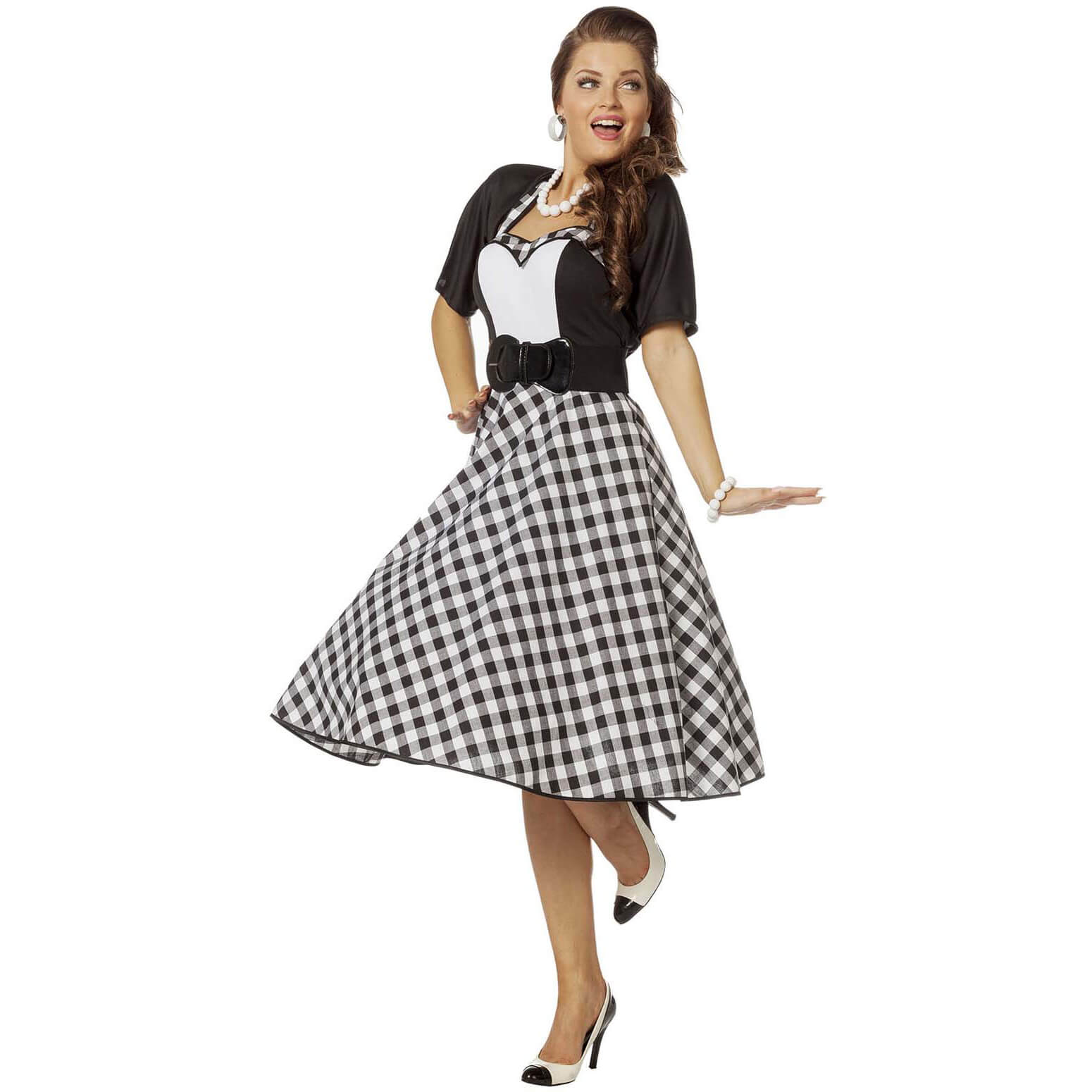 50er Jahre Rock ’n Roll Girl Kostüm Kleid kurz Rockabilly kariert schwarz-weiß