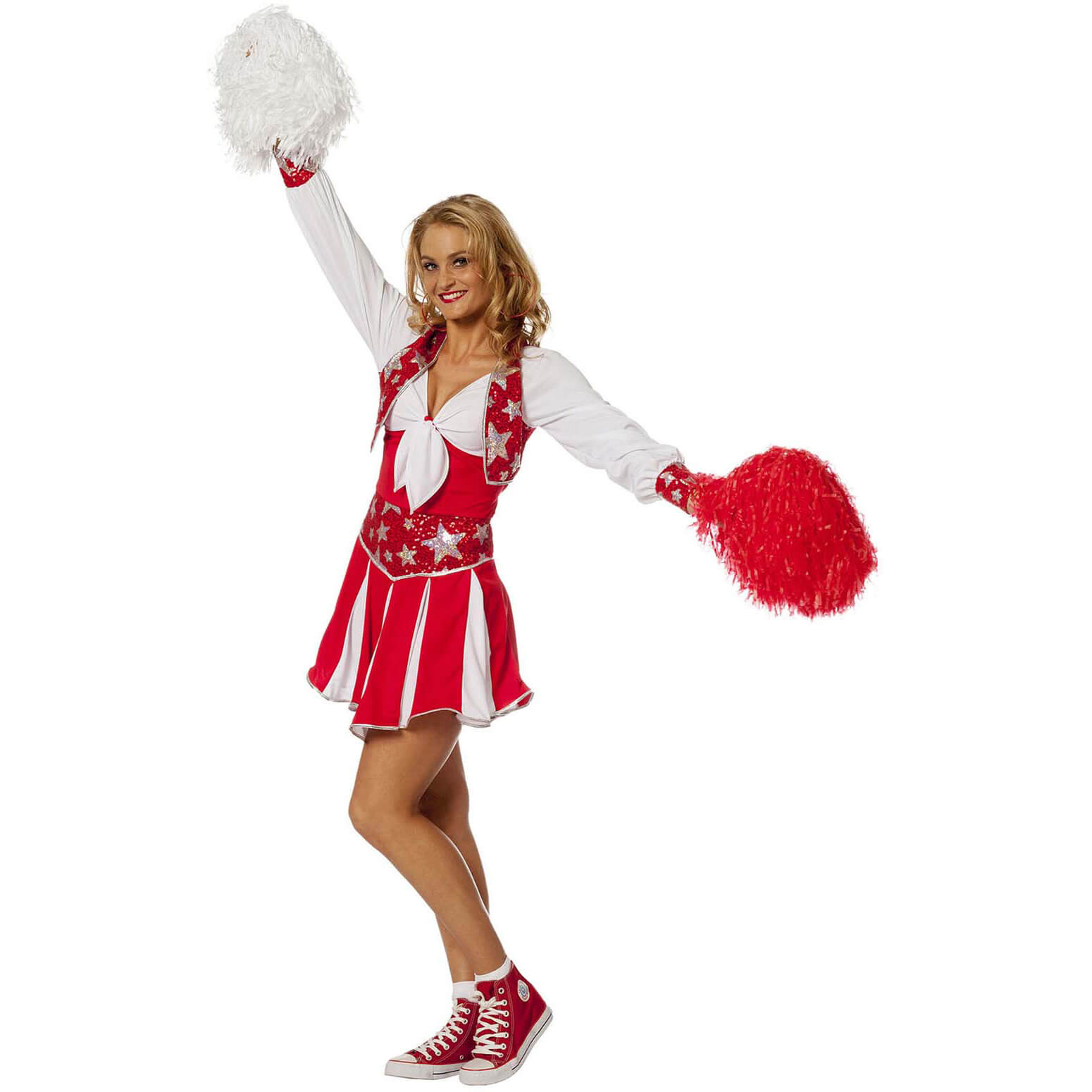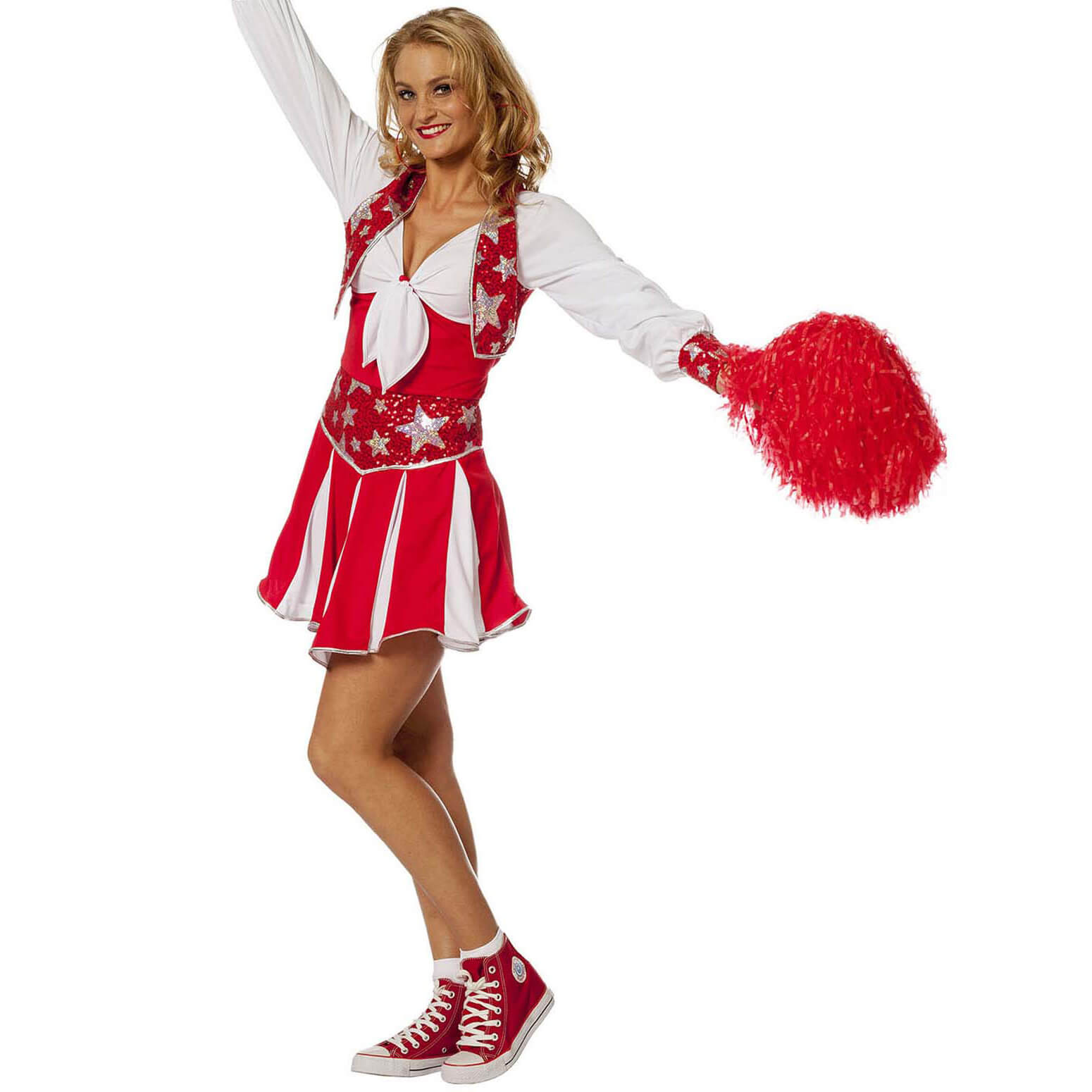 Cheerleaderin Kostüm Kleid kurz rot-weiß-silber