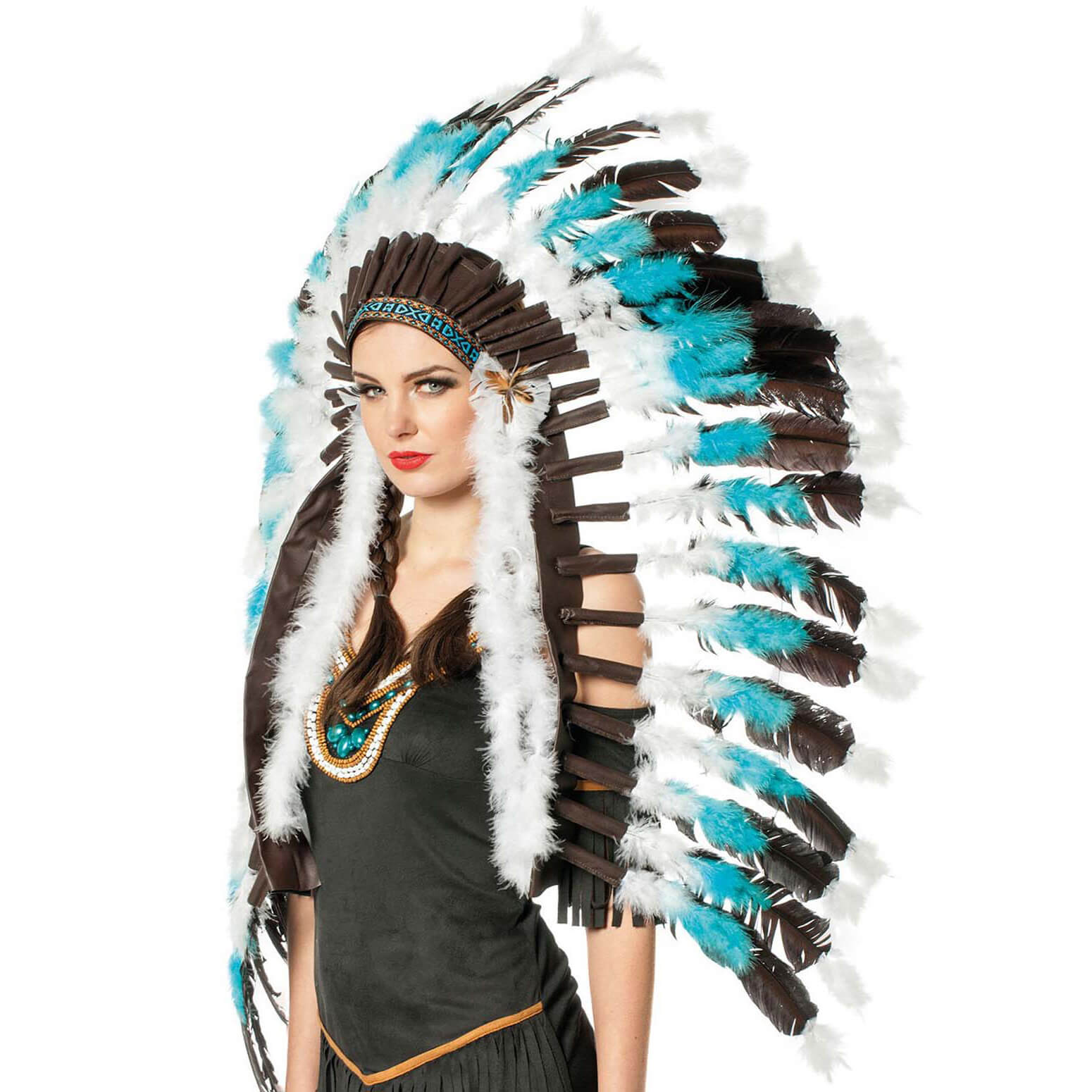 Indianer Federkopfschmuck Superdeluxe türkis-schwarz