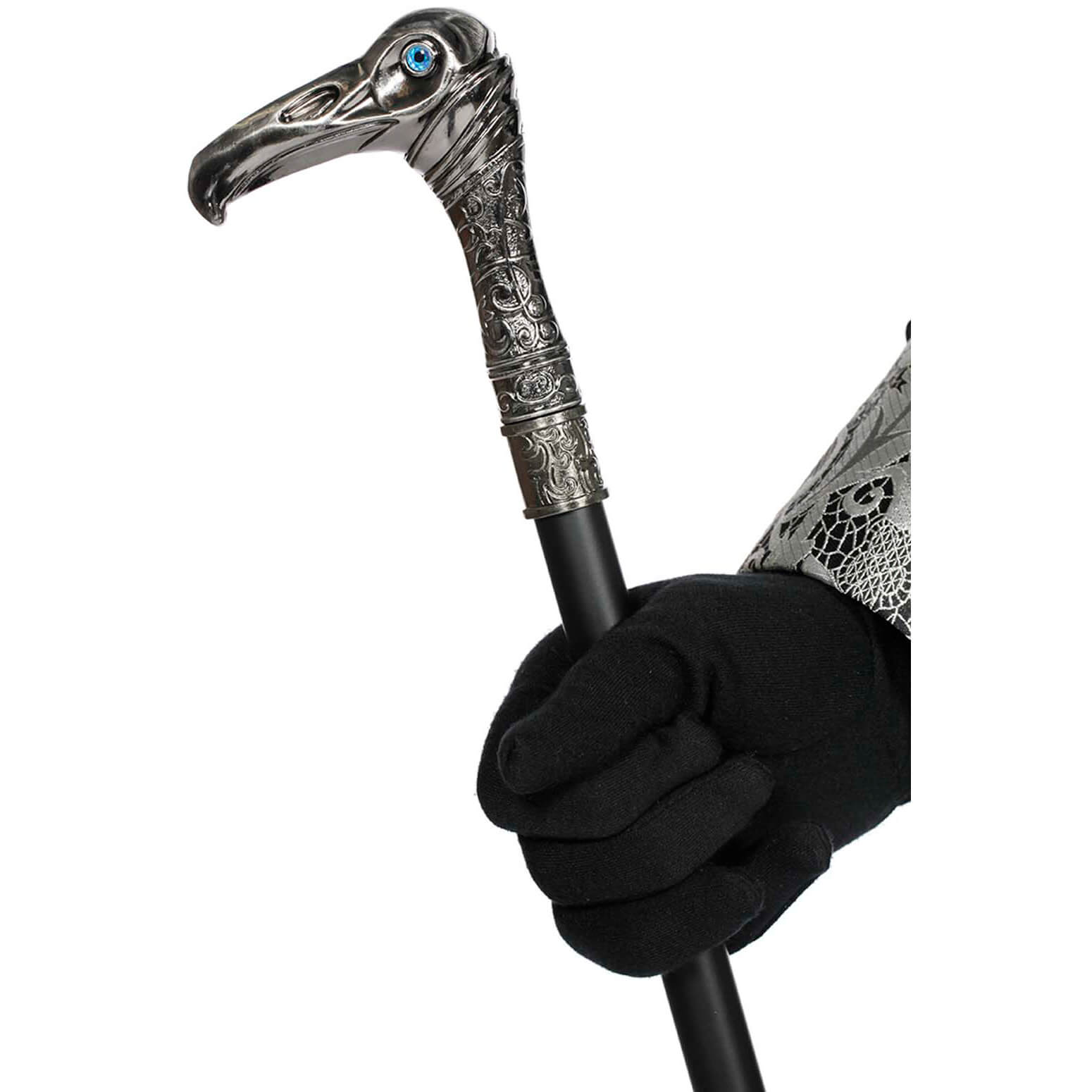 Vampir / Zauberer Spazierstock Vogelkopf schwarz-silber-blau