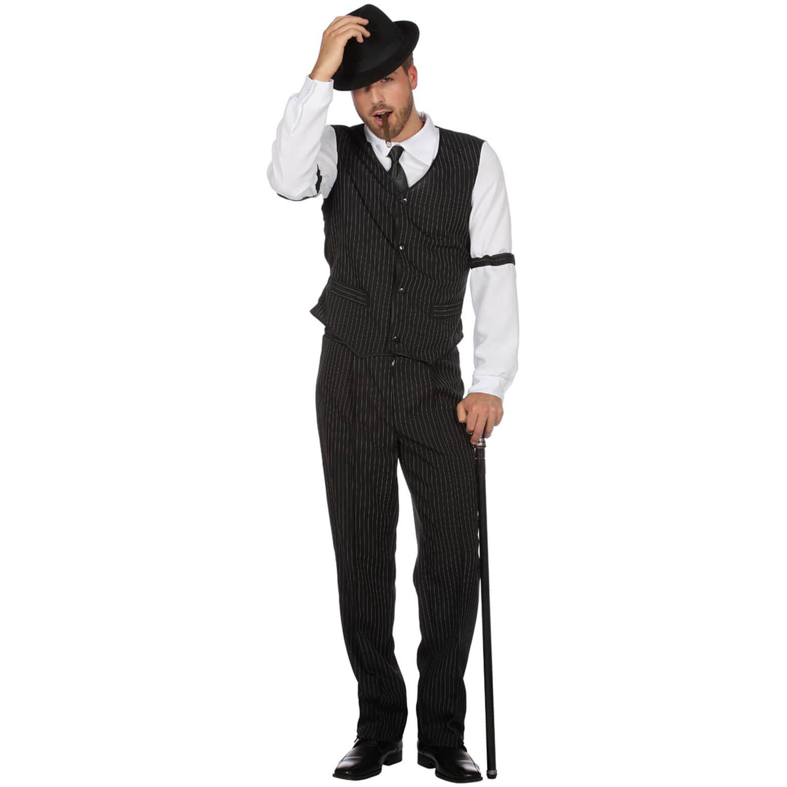 20er Jahre Gangster Kostüm Anzug mit Nadelstreifen schwarz-weiß – (ARTIKEL/REFERNZ: 8714438762875/WB530048-8714438762882/WB530050-8714438762899/WB530052-8714438762905/WB530054-8714438762912/WB530056-8714438762929/WB530058-8714438762936/WB530060 – Kategorie/Suche: – Hersteller: Wilbers & Wilbers)