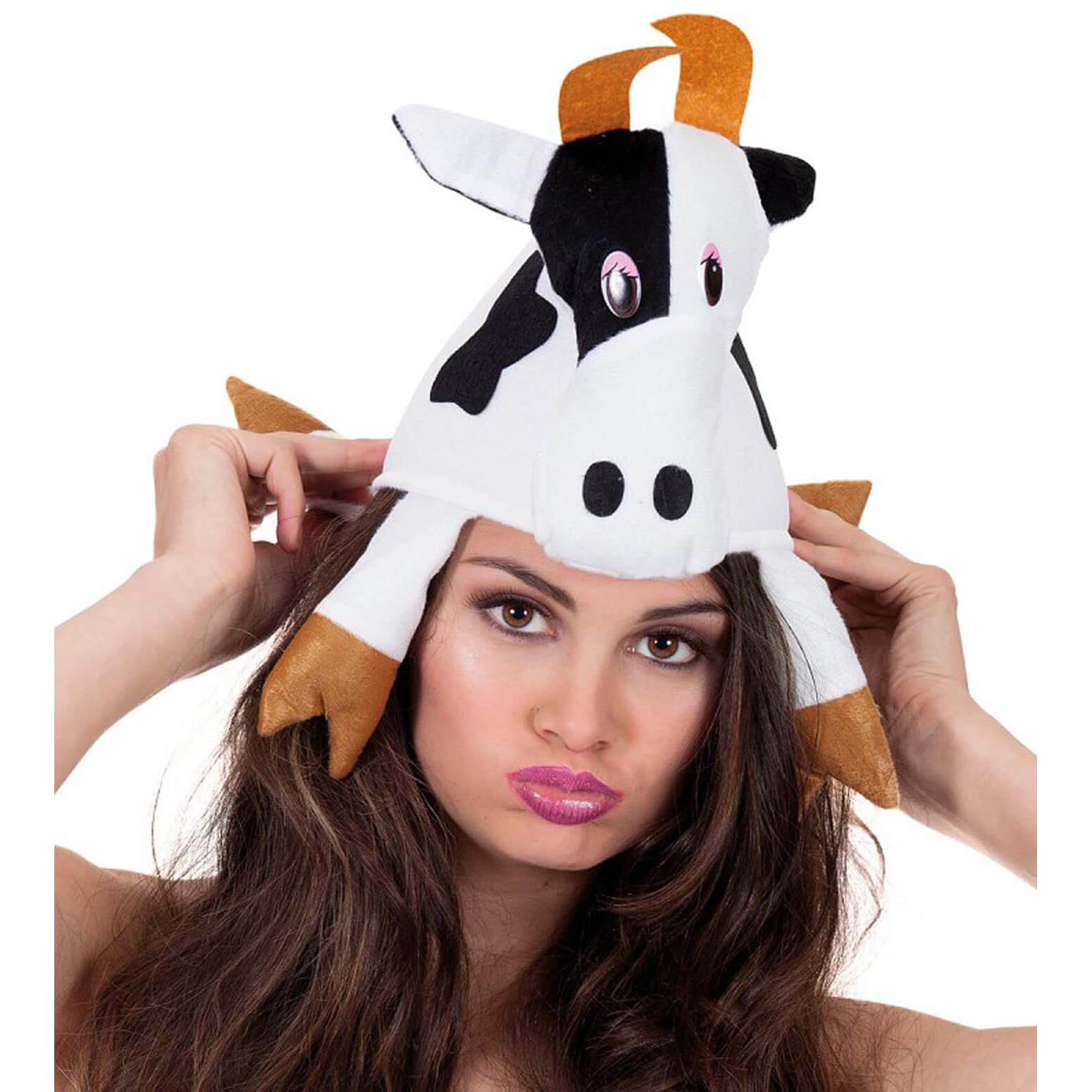 Kuh Mütze Textilhut in Kuhform schwarz-weiß