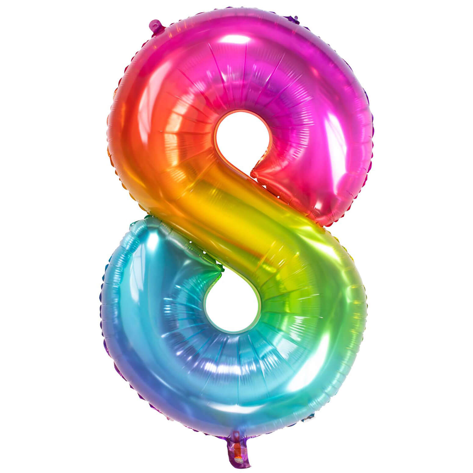 8 Geburtstags Jubiläums Folien Zahlenballon XXL Yummy Gummy Motiv Folienballon Helium geeignet 81cm hoch regenbogen