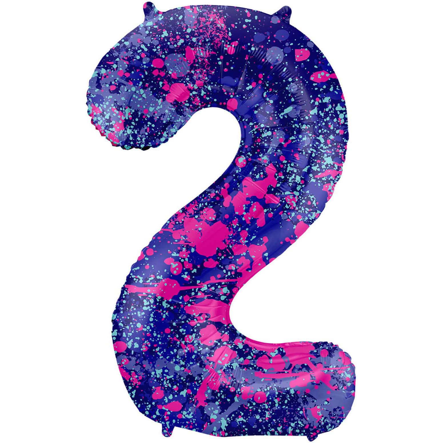 2 Geburtstags Jubiläums Folien Zahlenballon XXL Paint Splash Folienballon Helium geeignet 85cm lila-pink – (ARTIKEL/REFERNZ: 8714572639026/FO63902 – Kategorie/Suche: – Hersteller: Folat BV)