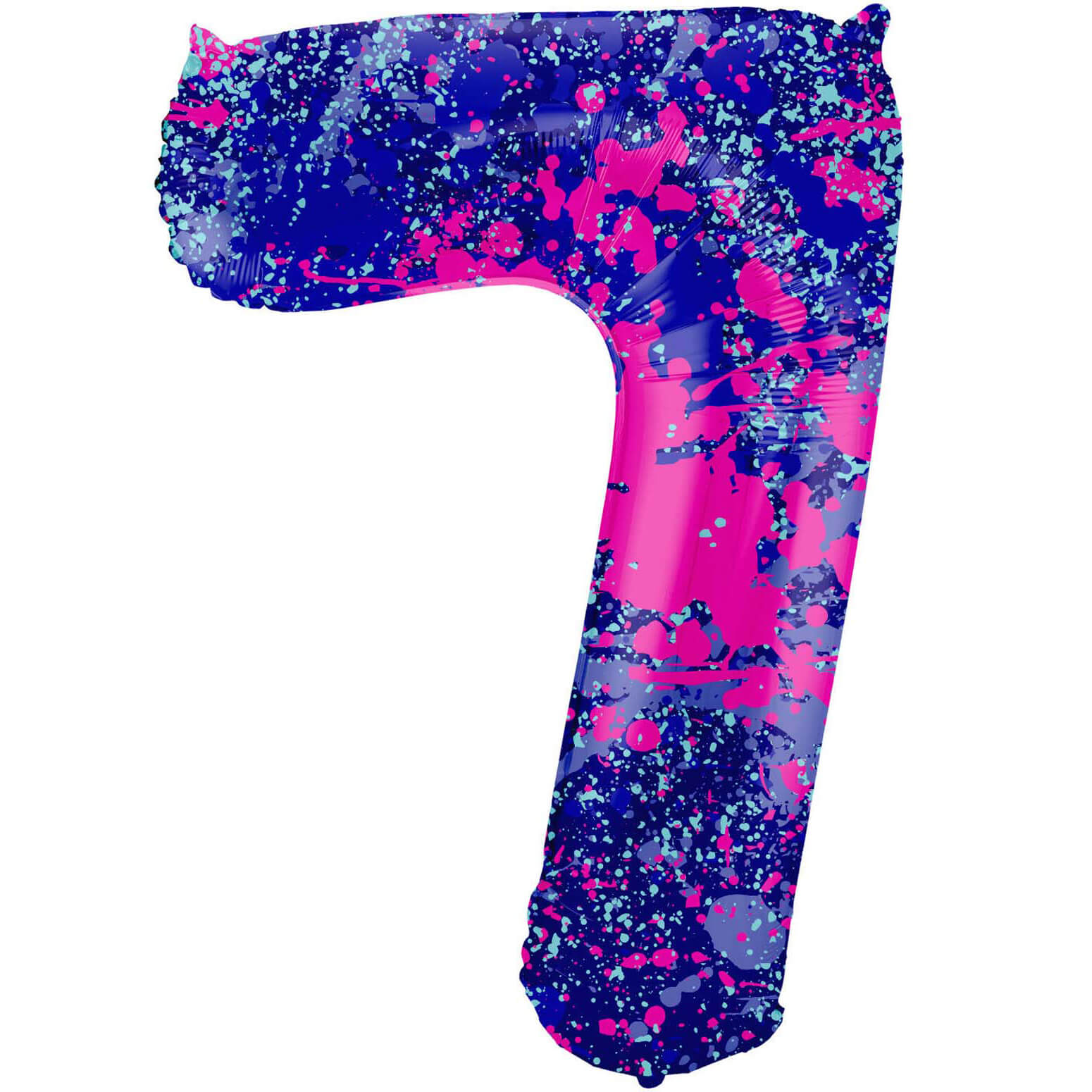 7 Geburtstags Jubiläums Folien Zahlenballon XXL Paint Splash Folienballon Helium geeignet 85cm lila-pink