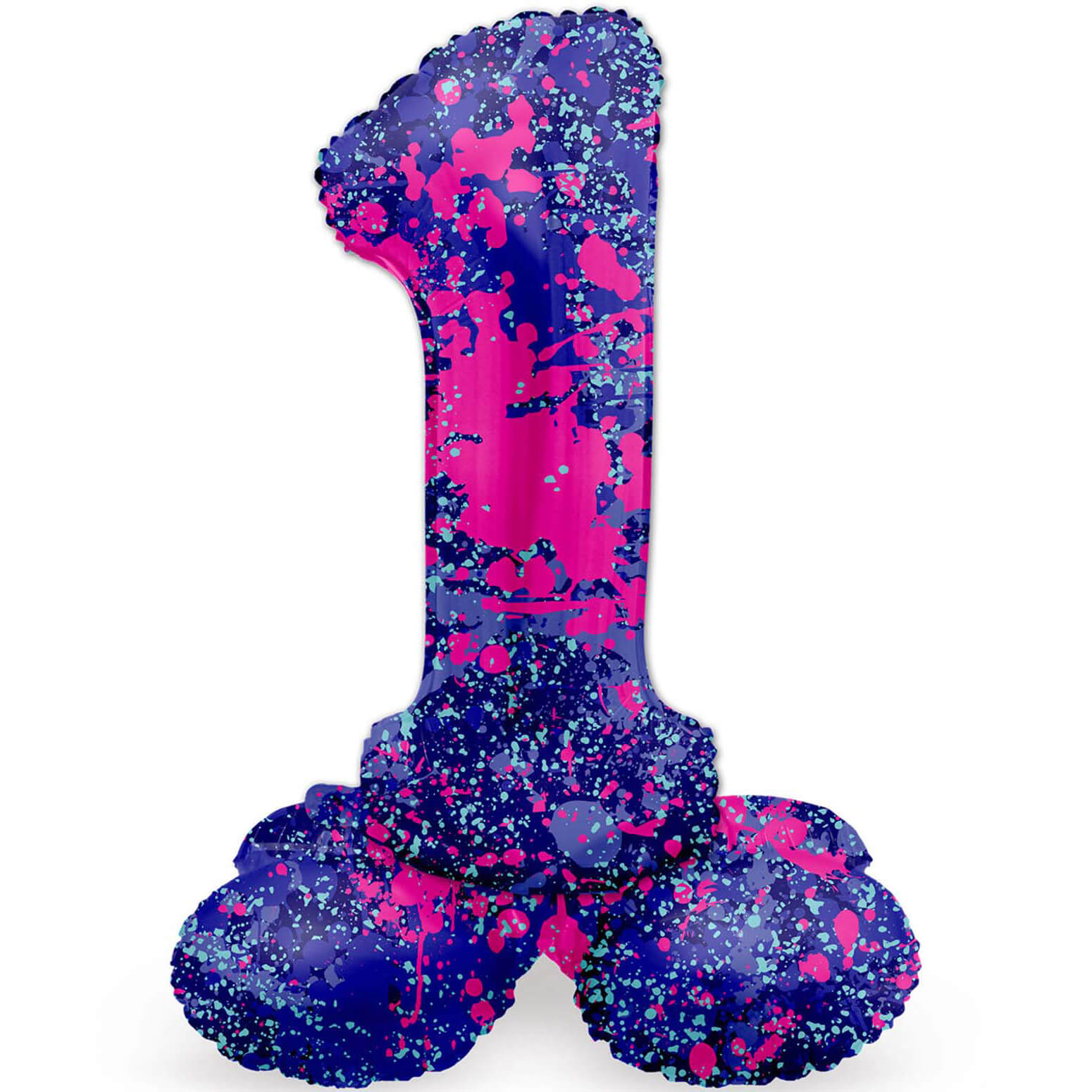 1 Geburtstags Jubiläums Folien Zahlenballon XL Paint Splash Folienballon mit Basis zum Hinstellen 72cm lila-pink