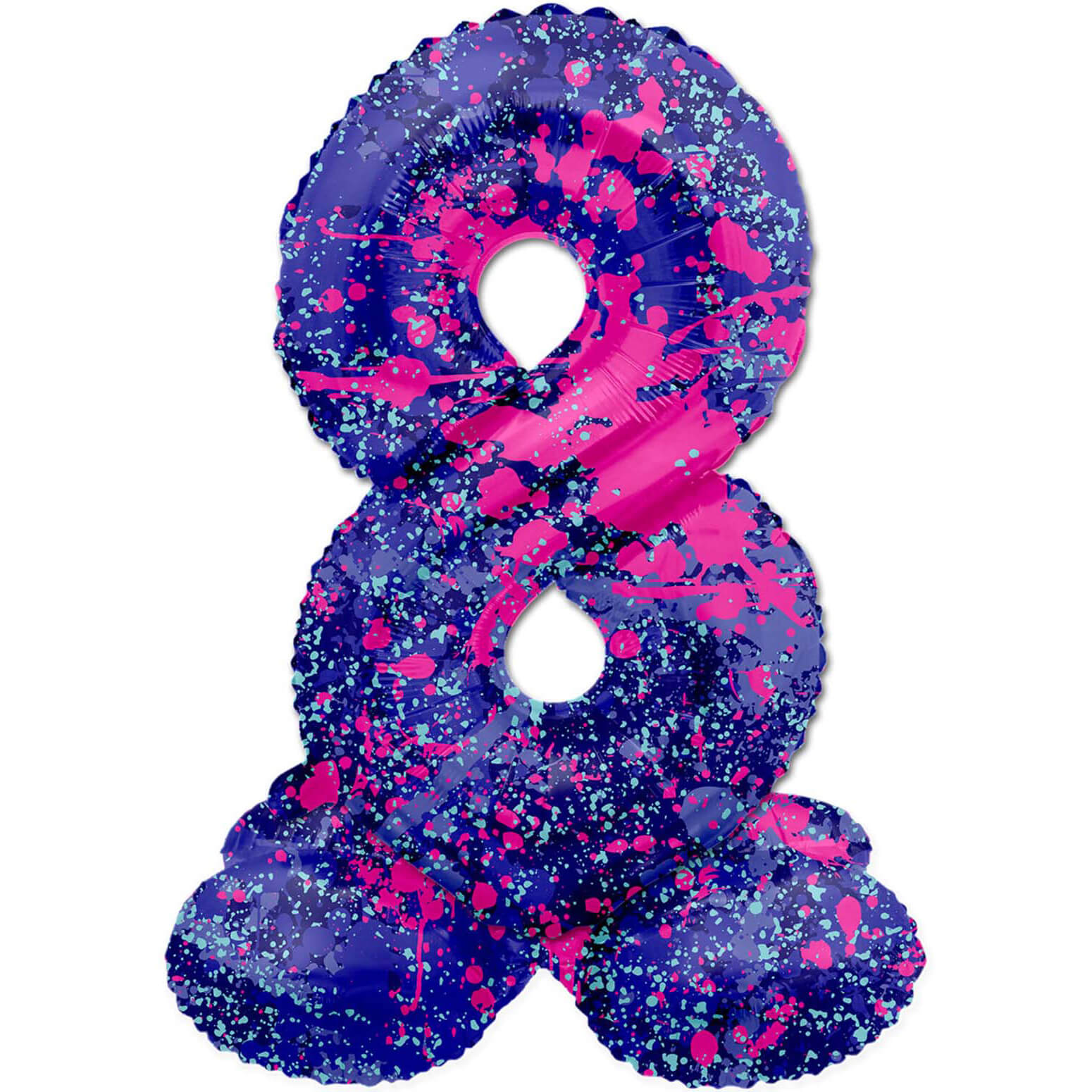 8 Geburtstags Jubiläums Folien Zahlenballon XL Paint Splash Folienballon mit Basis zum Hinstellen 72cm lila-pink