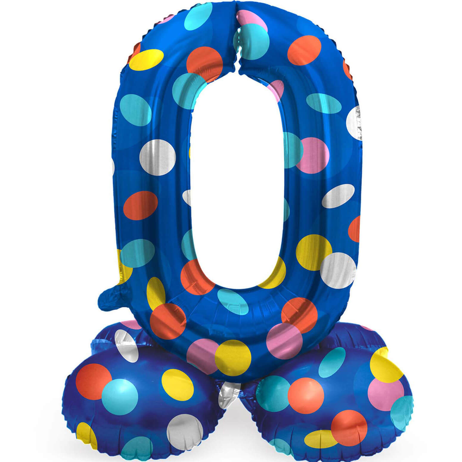 0 Geburtstags Jubiläums Folien Zahlenballon XL C. Dots Punkte Folienballon mit Basis zum Hinstellen 72cm blau-bunt