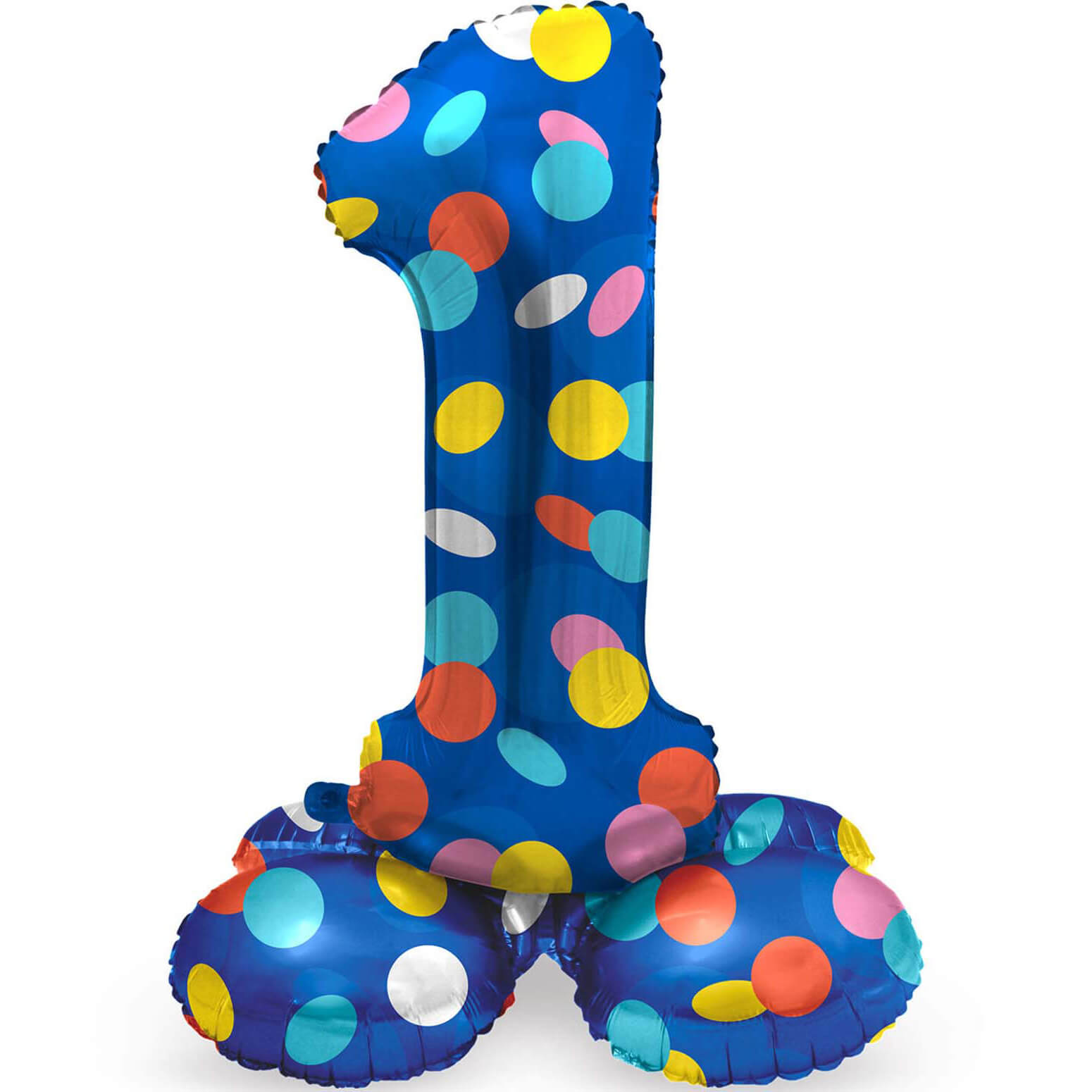 1 Geburtstags Jubiläums Folien Zahlenballon XL C. Dots Punkte Folienballon mit Basis zum Hinstellen 72cm blau-bunt