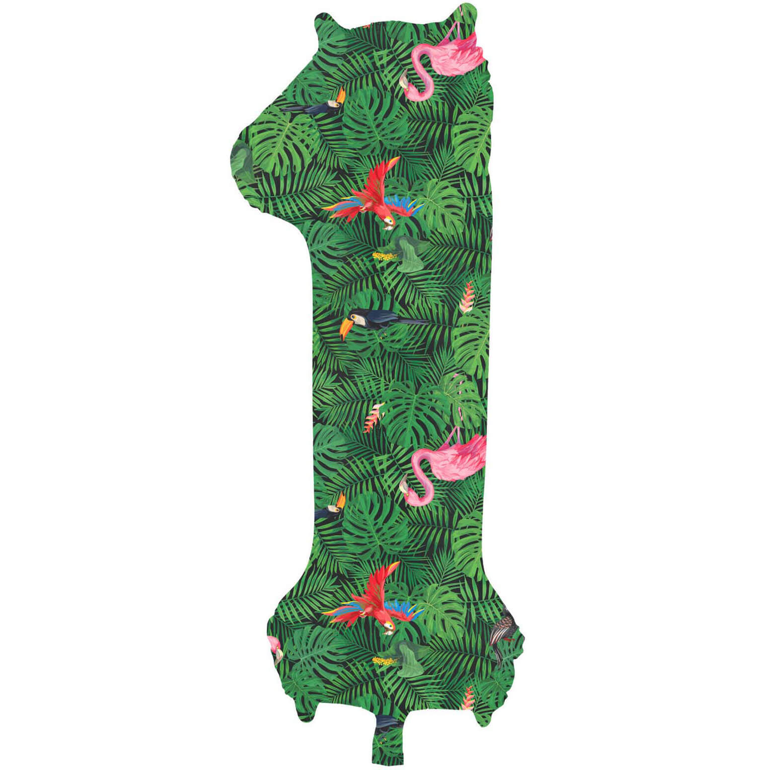 1 Geburtstags Jubiläums Folien Zahlenballon XXL Jungle Vibe Jungel Folienballon Helium geeignet 85cm grün-bunt – (ARTIKEL/REFERNZ: 8714572641517/FO64151 – Kategorie/Suche: – Hersteller: Folat BV)