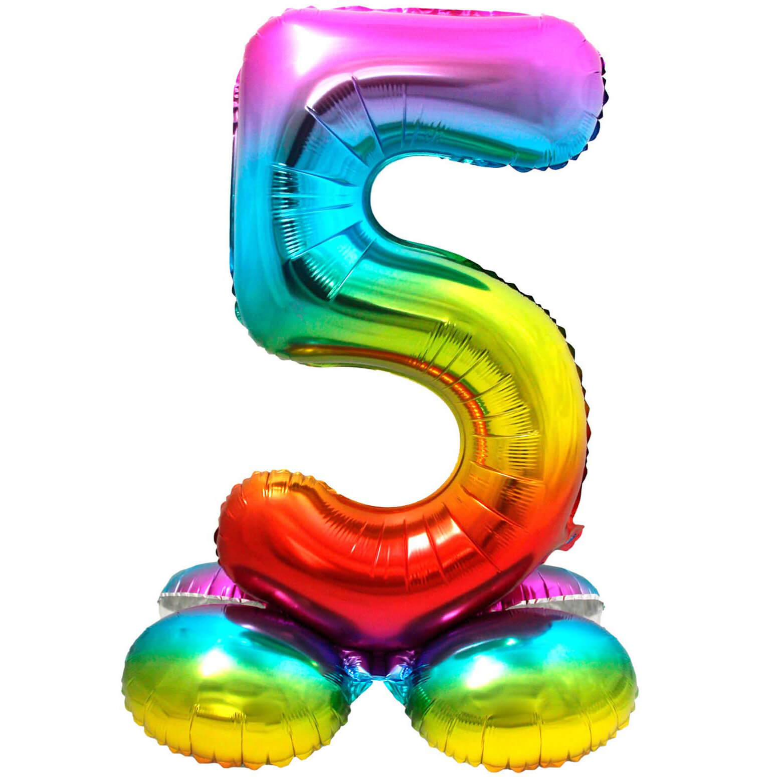 5 Geburtstags Jubiläums Folien Zahlenballon XL Folienballon mit Basis zum Hinstellen 72cm hoch metallic regenbogen