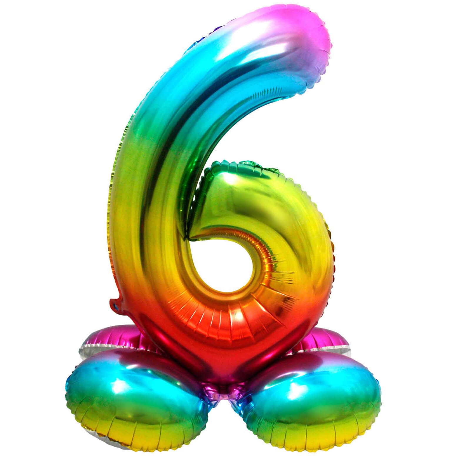 6 Geburtstags Jubiläums Folien Zahlenballon XL Folienballon mit Basis zum Hinstellen 72cm hoch metallic regenbogen