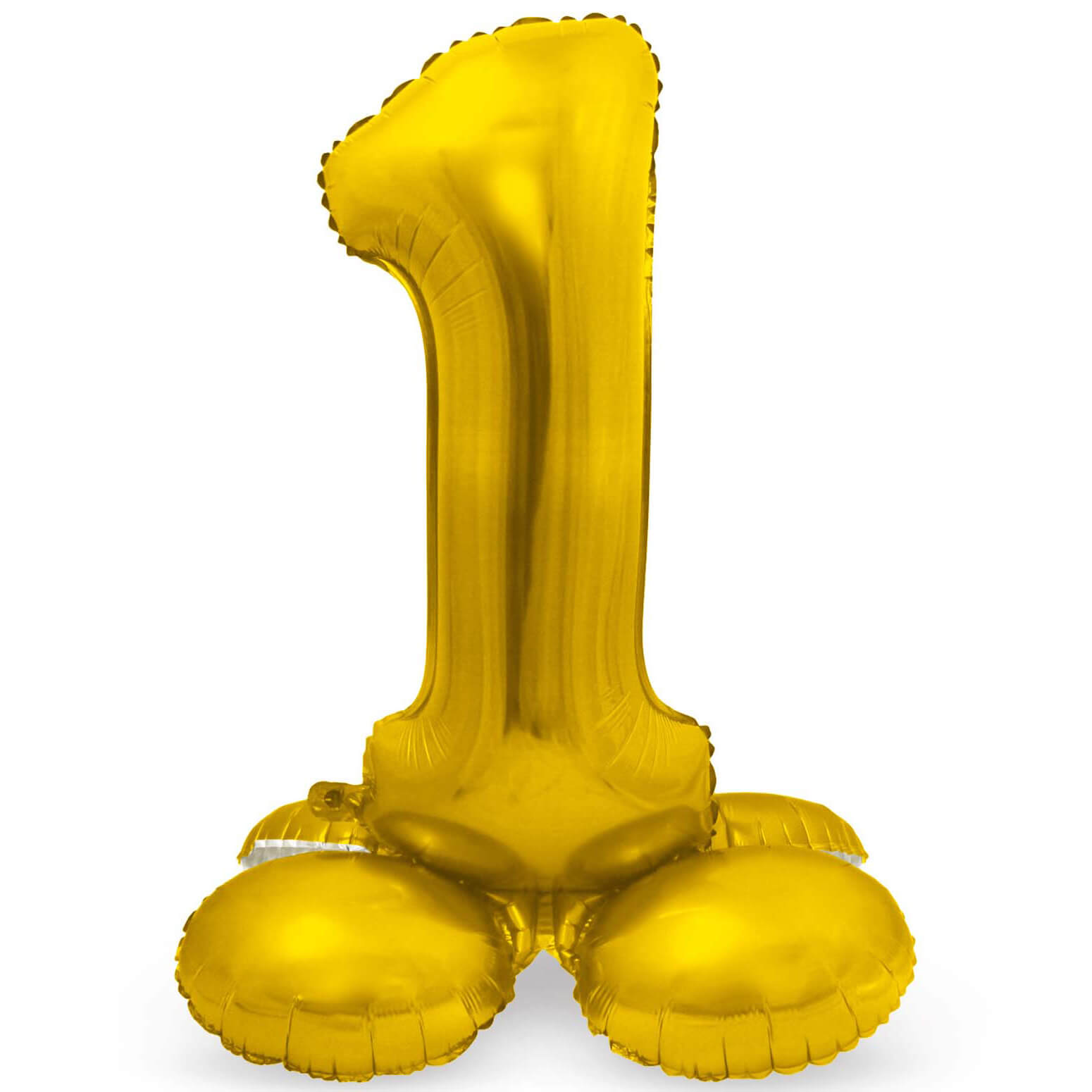 1 Geburtstags Jubiläums Folien Zahlenballon XL Folienballon mit Basis zum Hinstellen 72cm hoch metallic gold