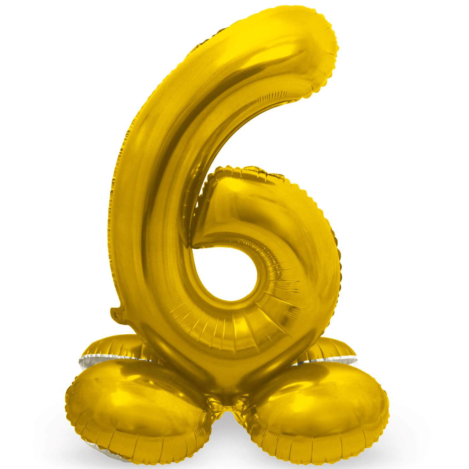 6 Geburtstags Jubiläums Folien Zahlenballon XL Folienballon mit Basis zum Hinstellen 72cm hoch metallic gold