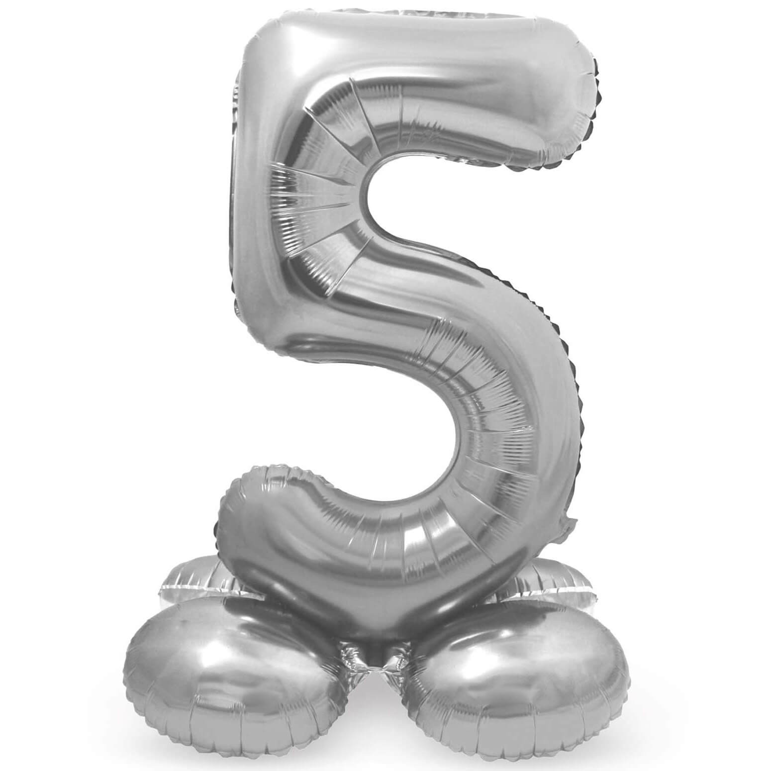 5 Geburtstags Jubiläums Folien Zahlenballon XL Folienballon mit Basis zum Hinstellen 72cm hoch metallic silber