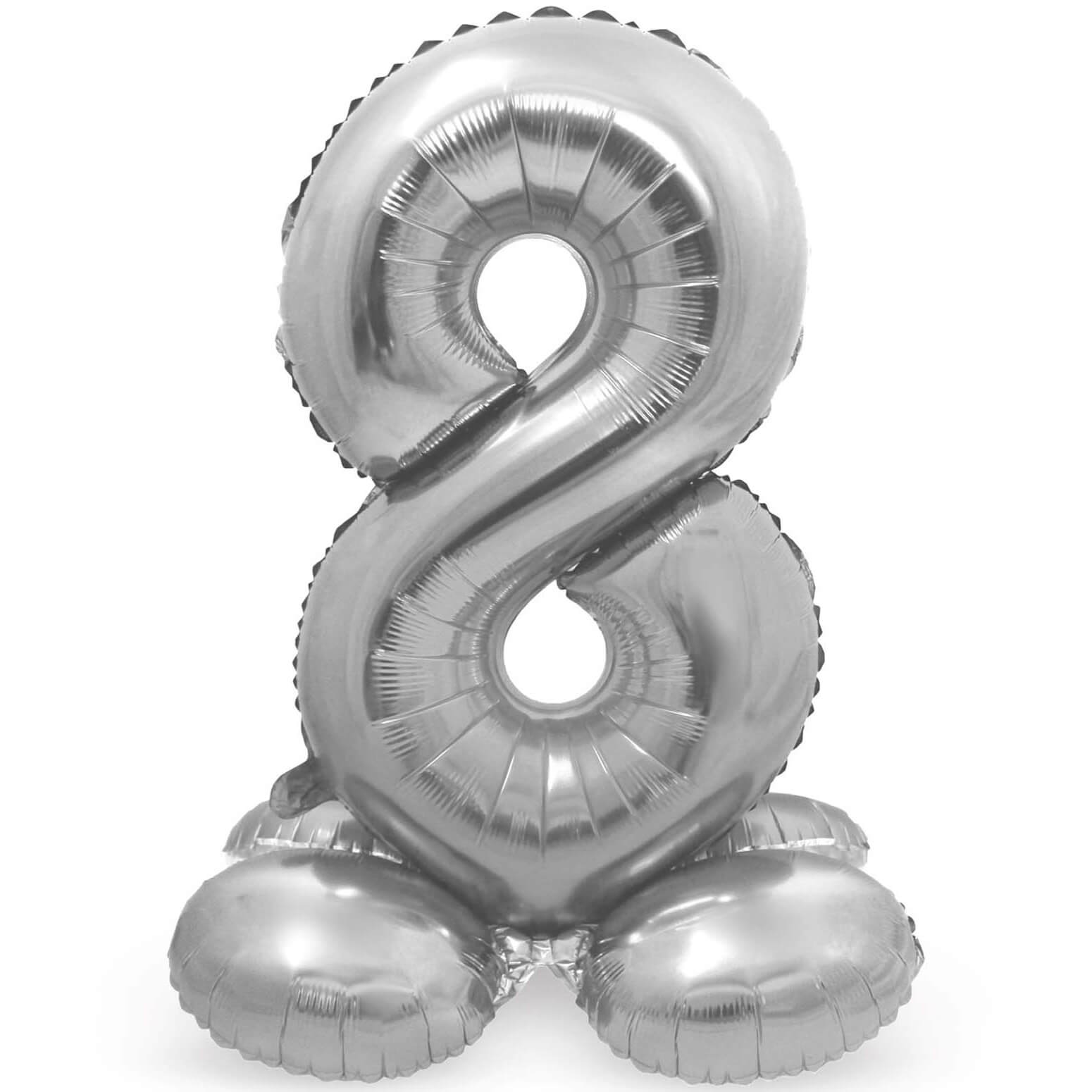 8 Geburtstags Jubiläums Folien Zahlenballon XL Folienballon mit Basis zum Hinstellen 72cm hoch metallic silber