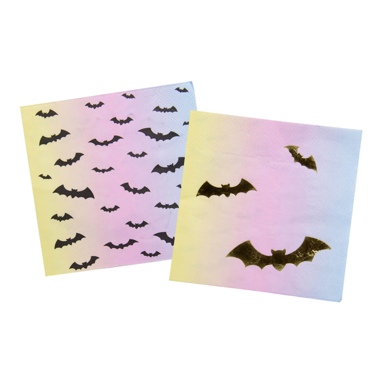 Fledermäuse Einweggeschirr Servietten Creep Pastell aus Papier 33x33cm schwarz-bunt