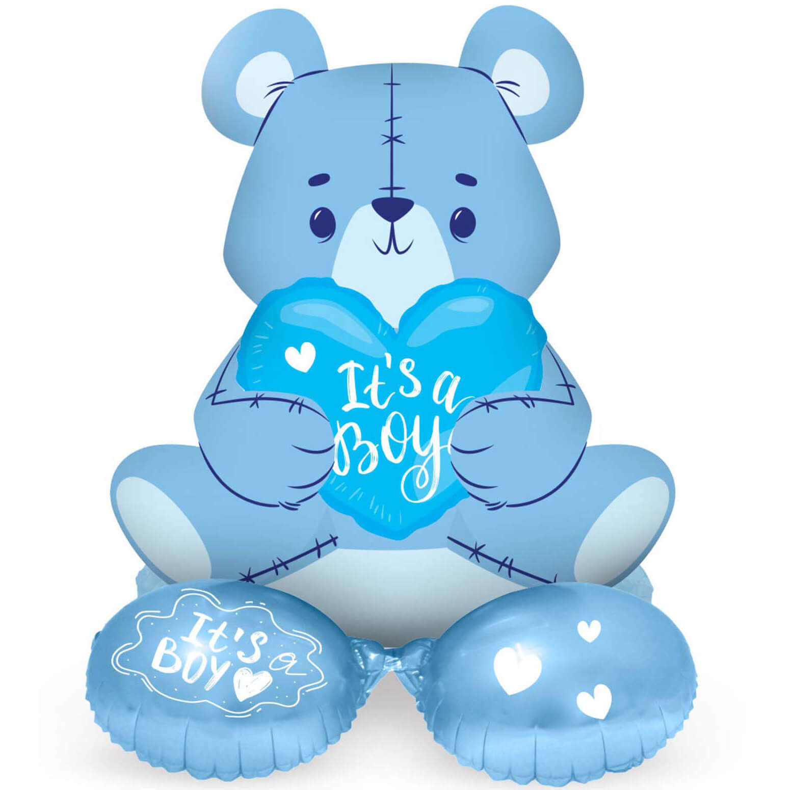 Babyparty Ein Junge! Folien Textballon XL Bär It’s a Boy Folienballon mit Basis zum Hinstellen 61cm hellblau