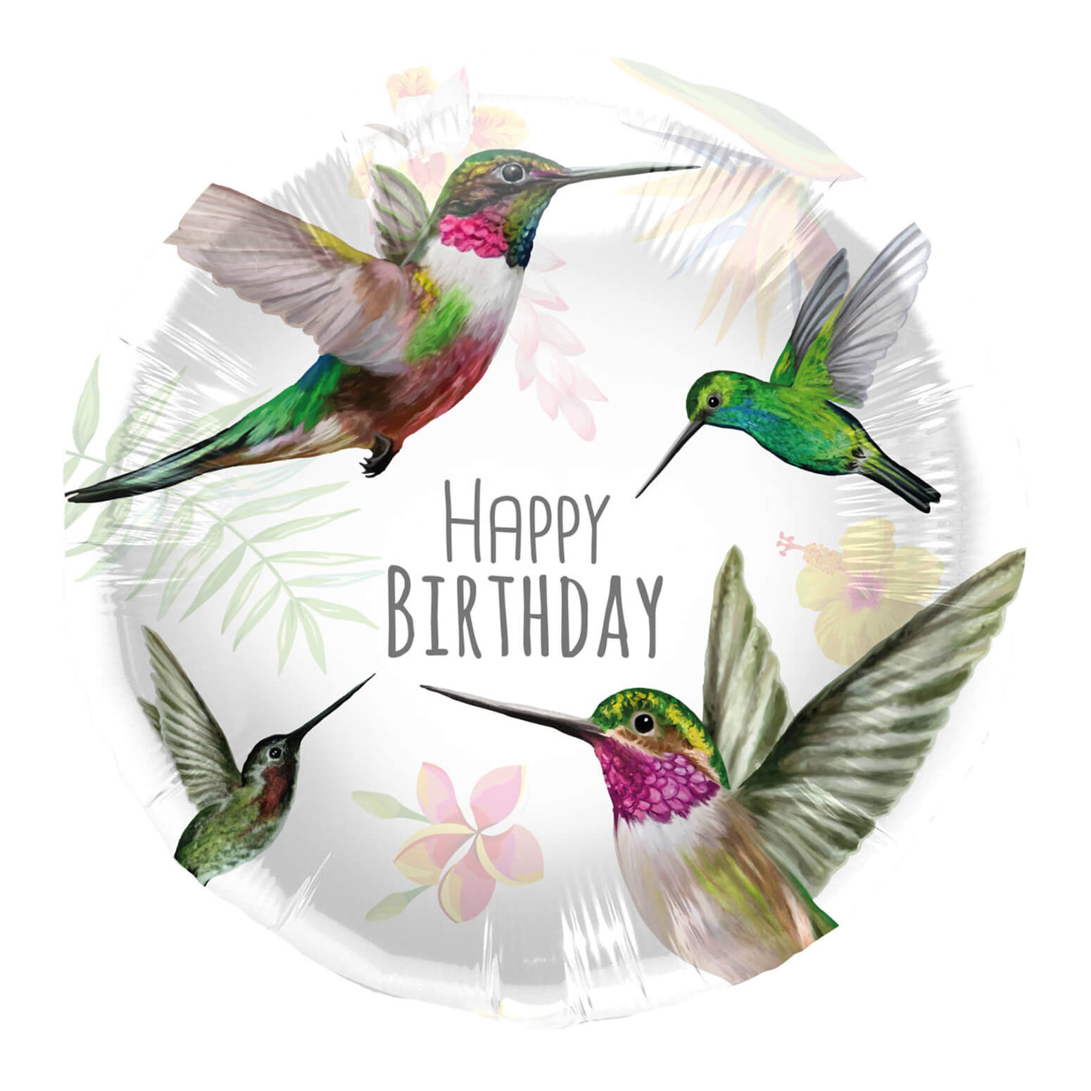 Geburtstag Happy Birthday Folien Textballon Kolibri Folienballon Helium geeignet 45cm weiß-bunt