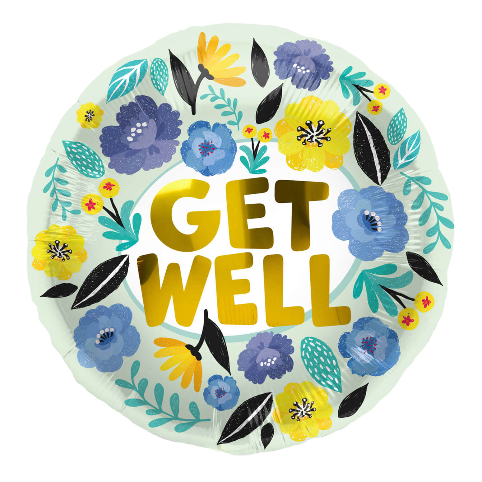 Wunsch Gute Besserung Folien Textballon Get Well mit Blumen Folienballon Helium geeignet 45cm gold-bunt