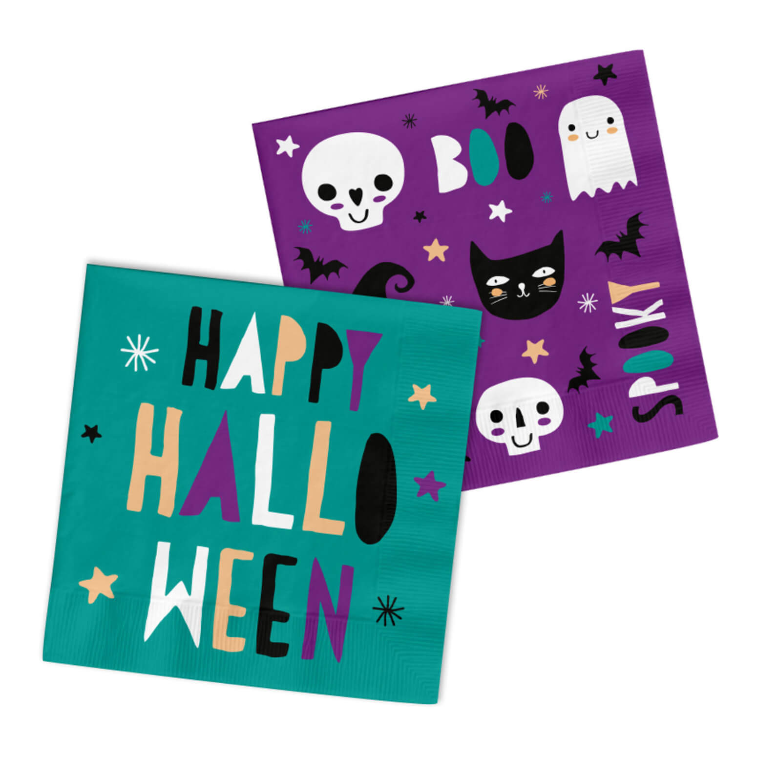 Happy Halloween Einweggeschirr Servietten aus Papier 33x33cm türkis-lila