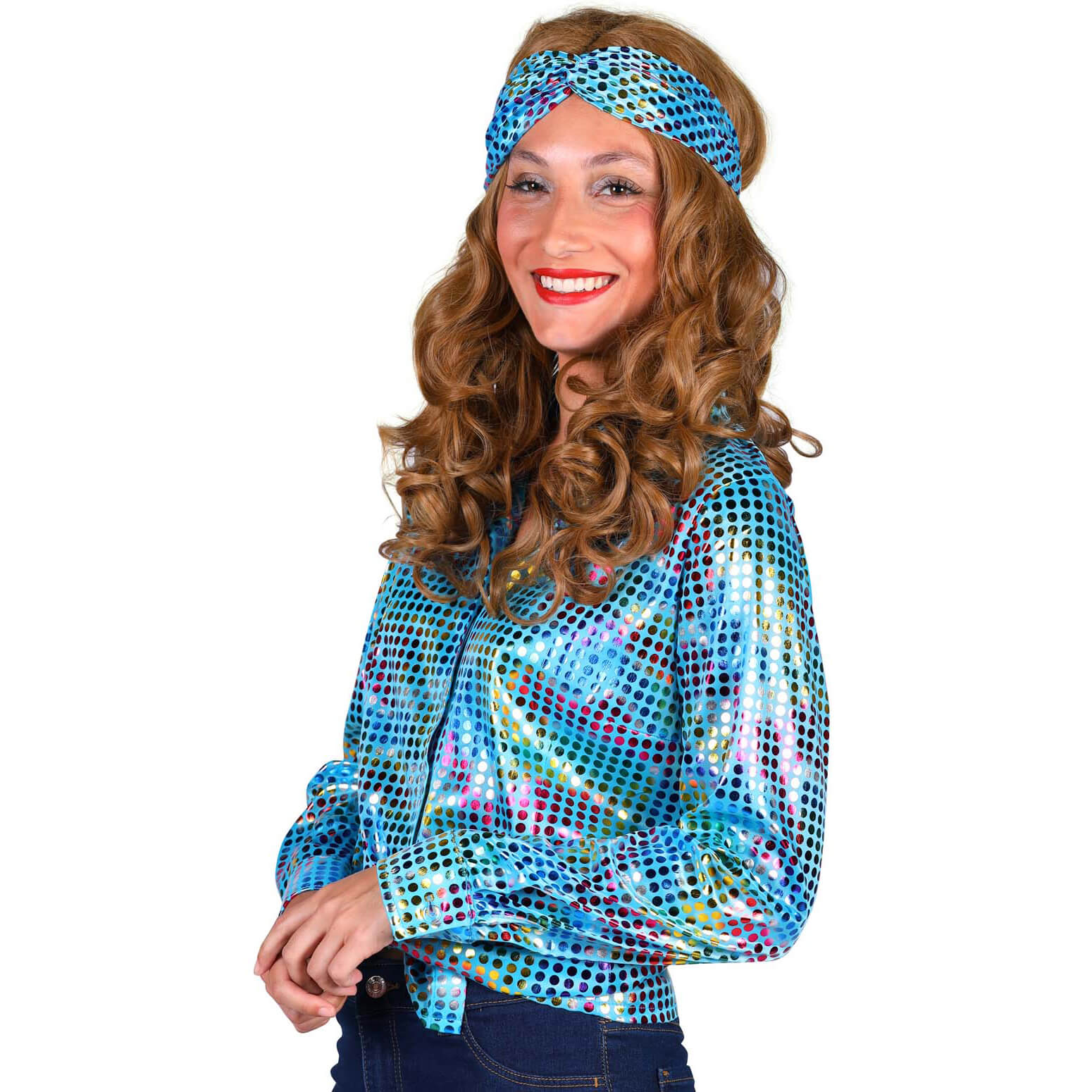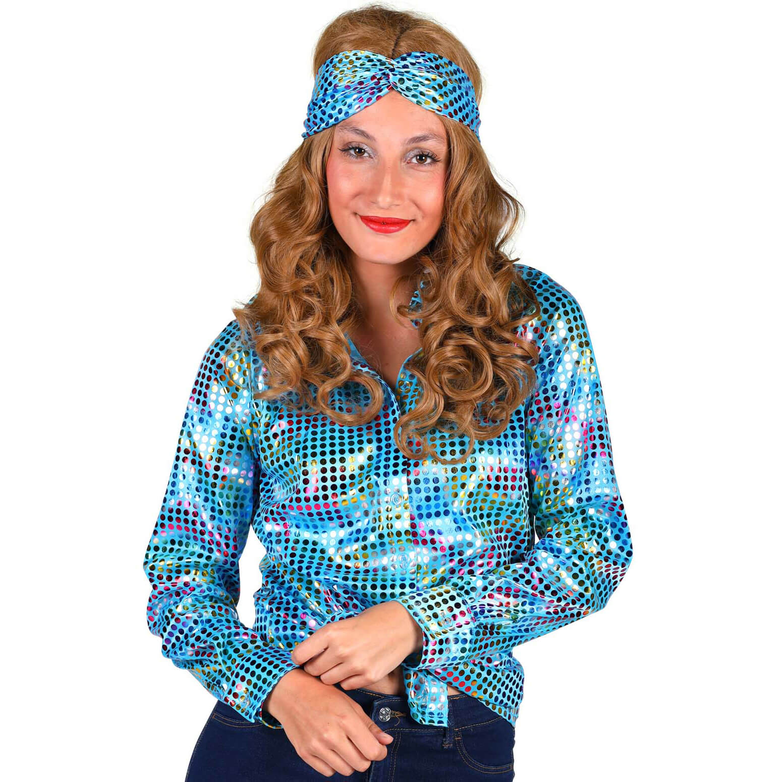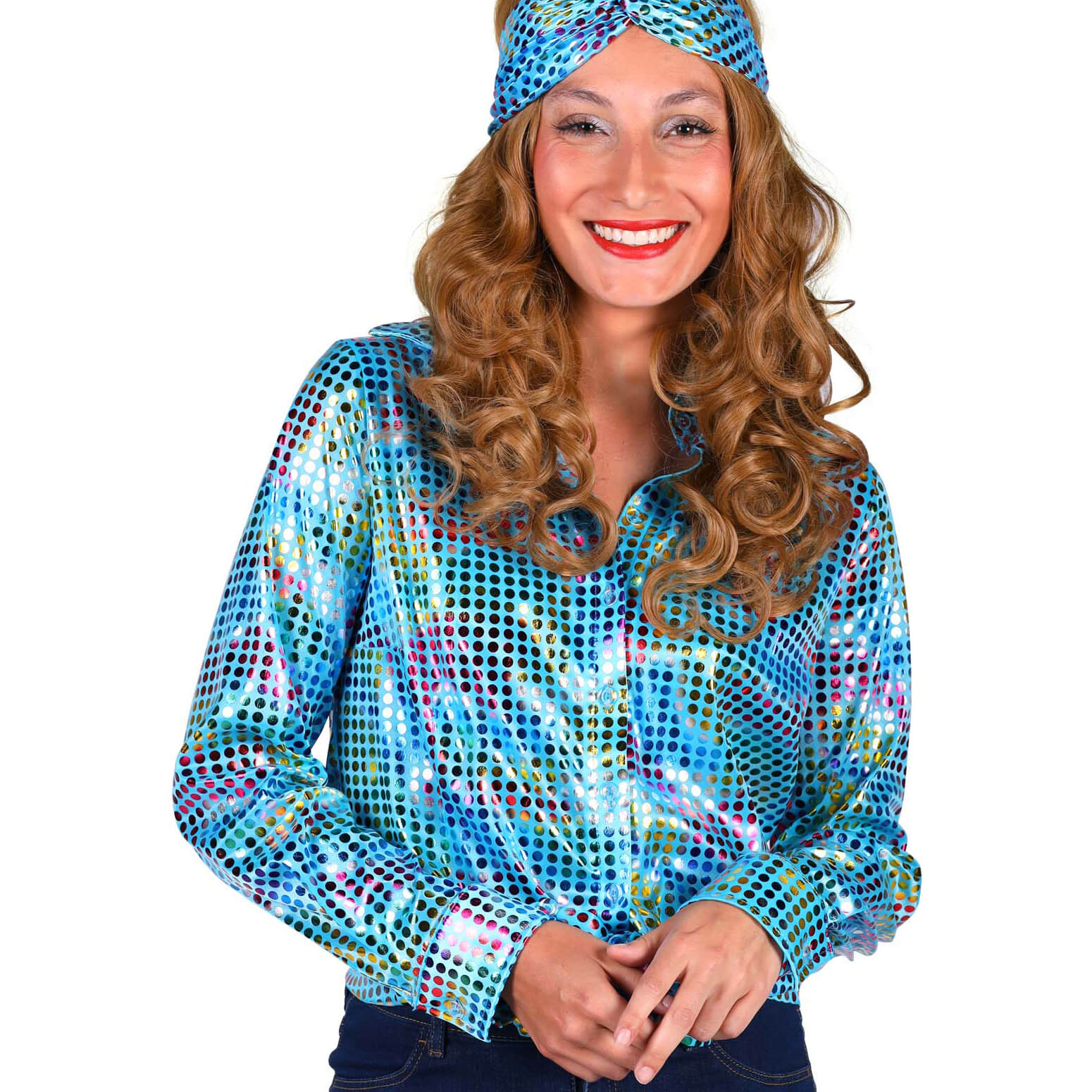 Show Disco Hemd Bluse mit Pailletten Deluxe türkis