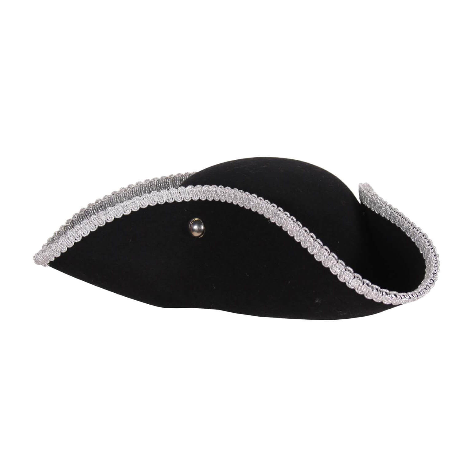 Edelleute / Piraten Dreispitzhut Wollfilz mit schmaler Bordüre Deluxe schwarz-silber
