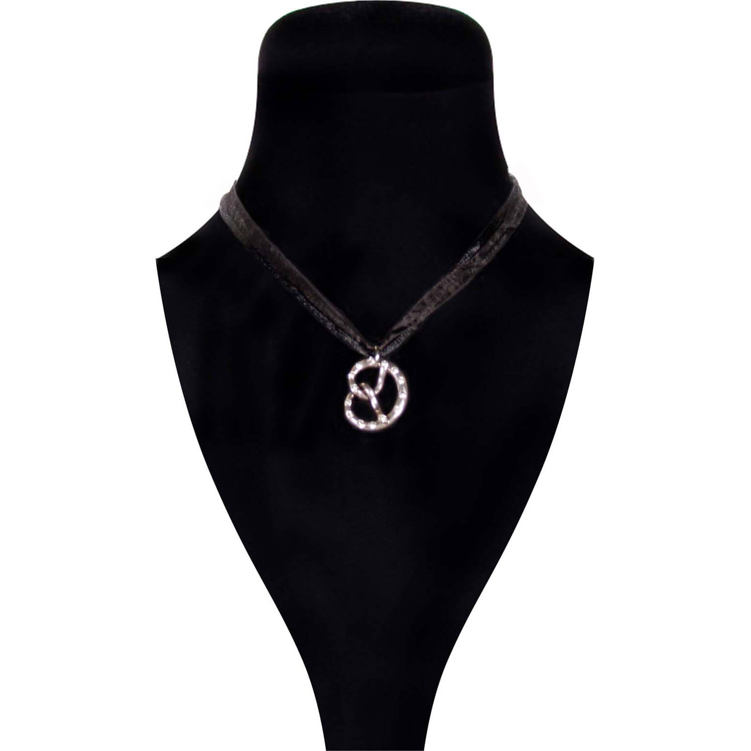 Trachten Halsband mit Anhänger Brezel mit Strassoptik schwarz-silber