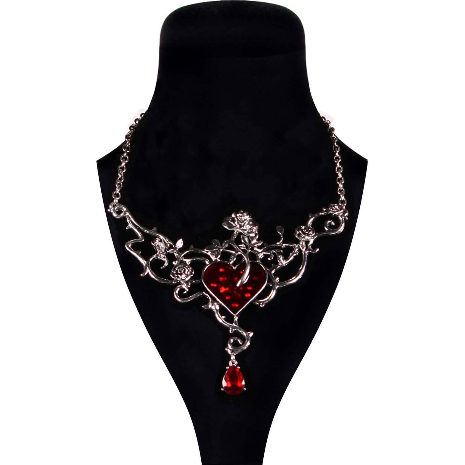 Edeldame Gothic 1900 Halskette Collier mit Herz und Rosen Deluxe silber-rot