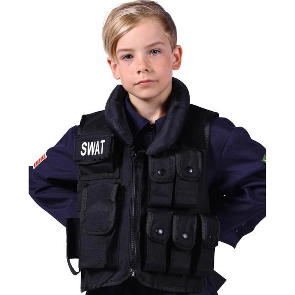 SWAT Kinderkostüm Teile-Set S.W.A.T. Deluxe schusssichere Weste mit Gurten schwarz-weiß