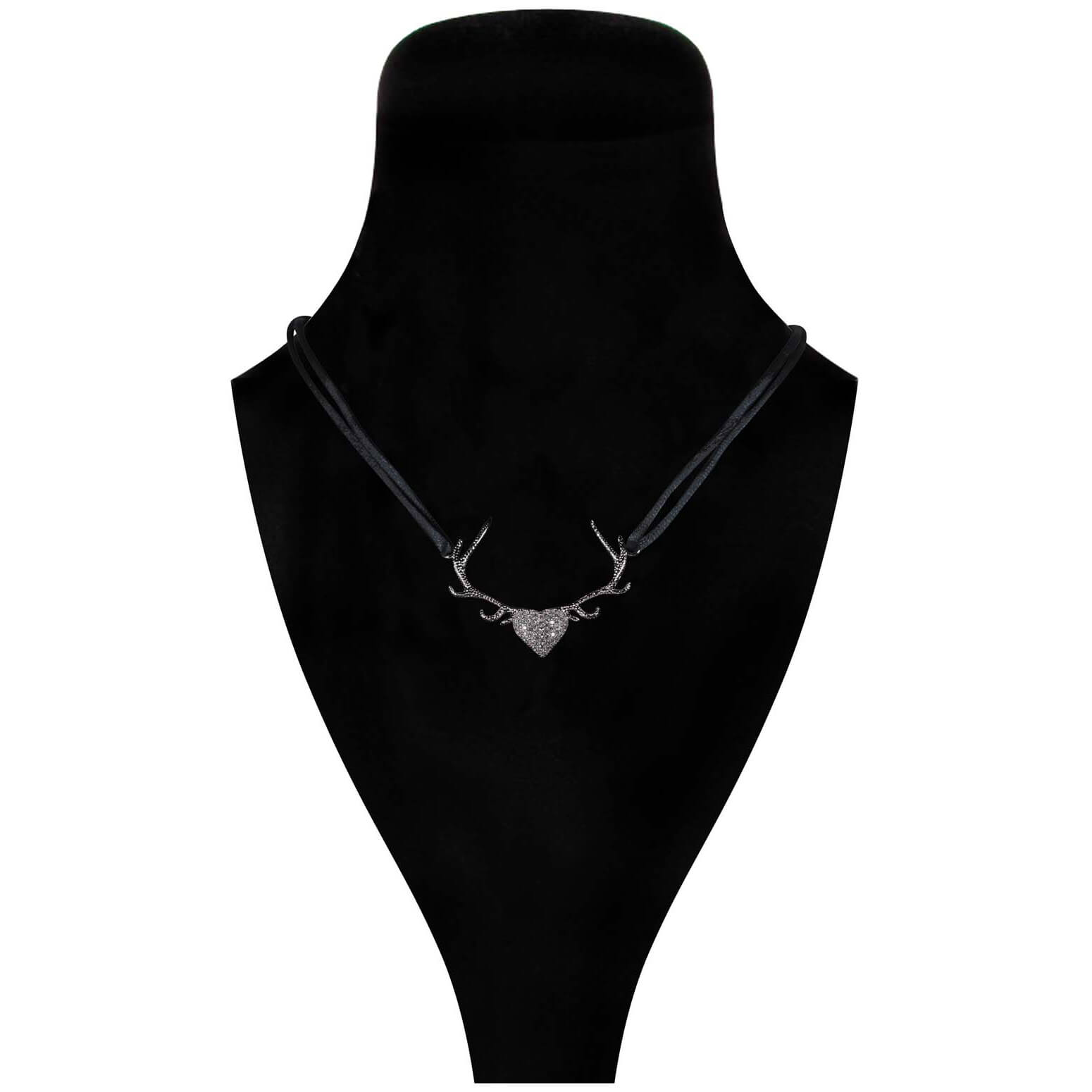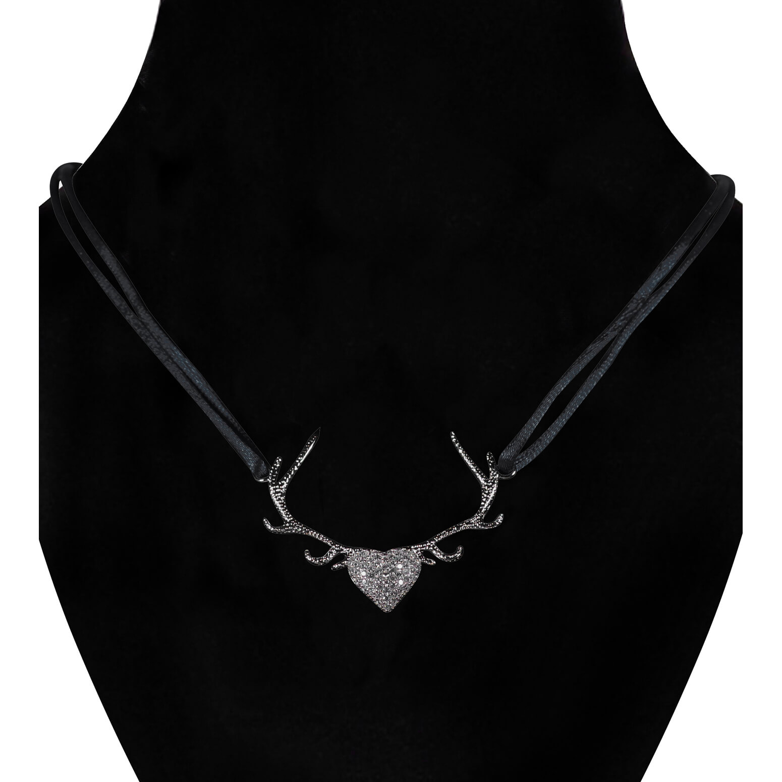 Trachten Halsband mit Anhänger Hirschgeweih schwarz-silber