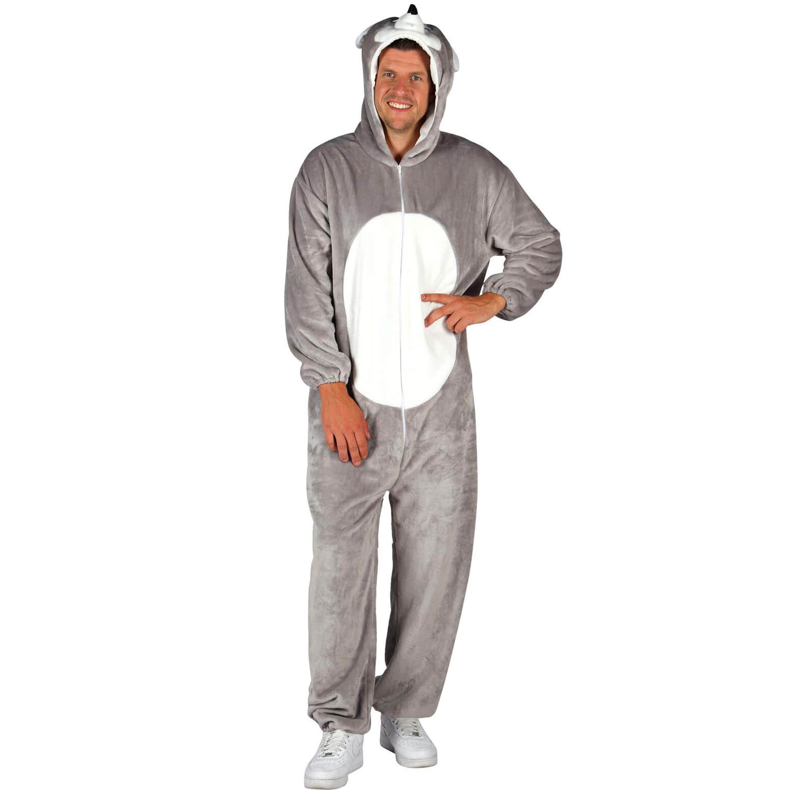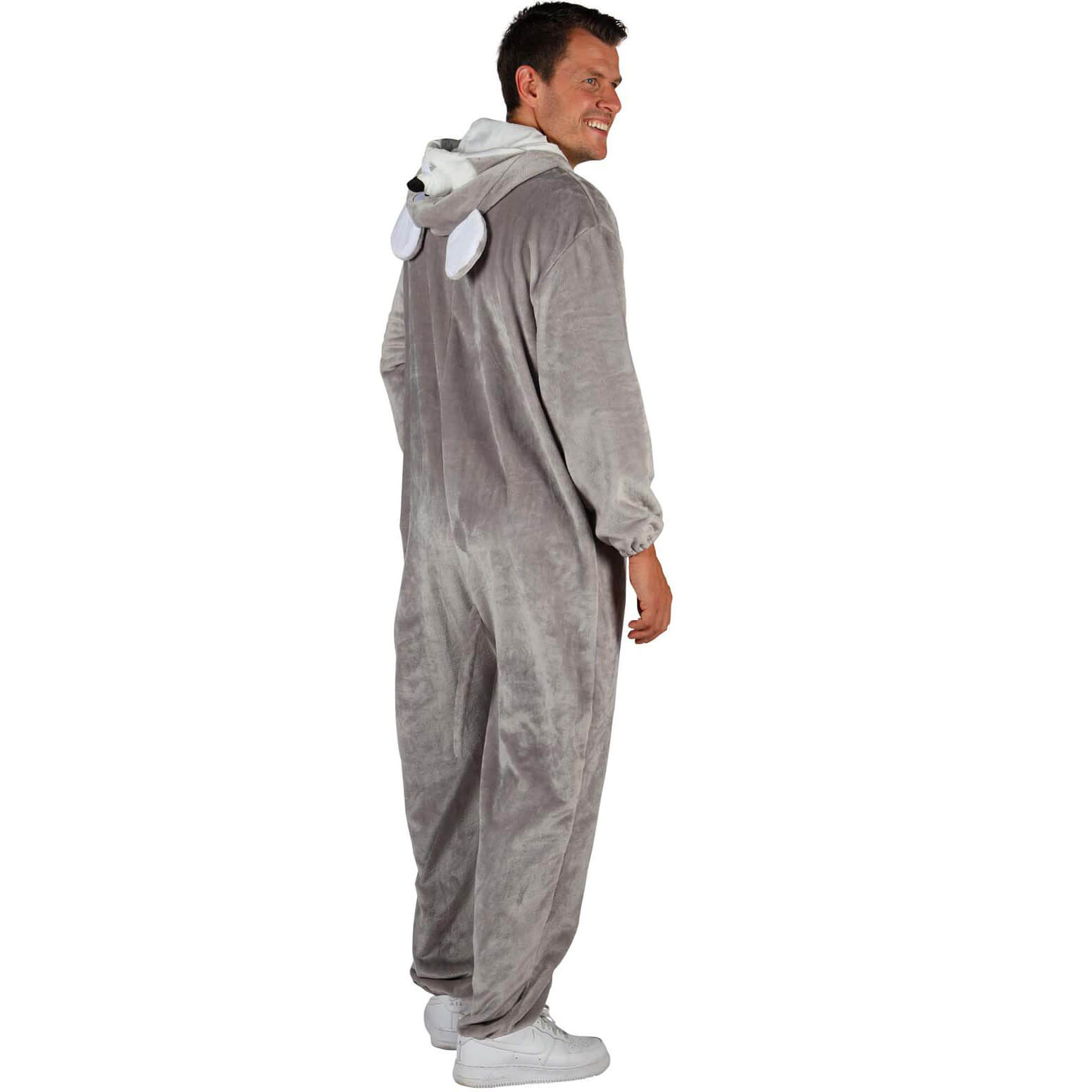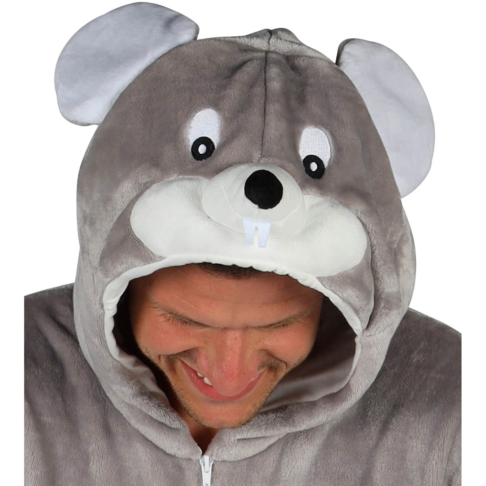 Maus Plüschkostüm Overall Plüsch Deluxe mit Kapuze grau