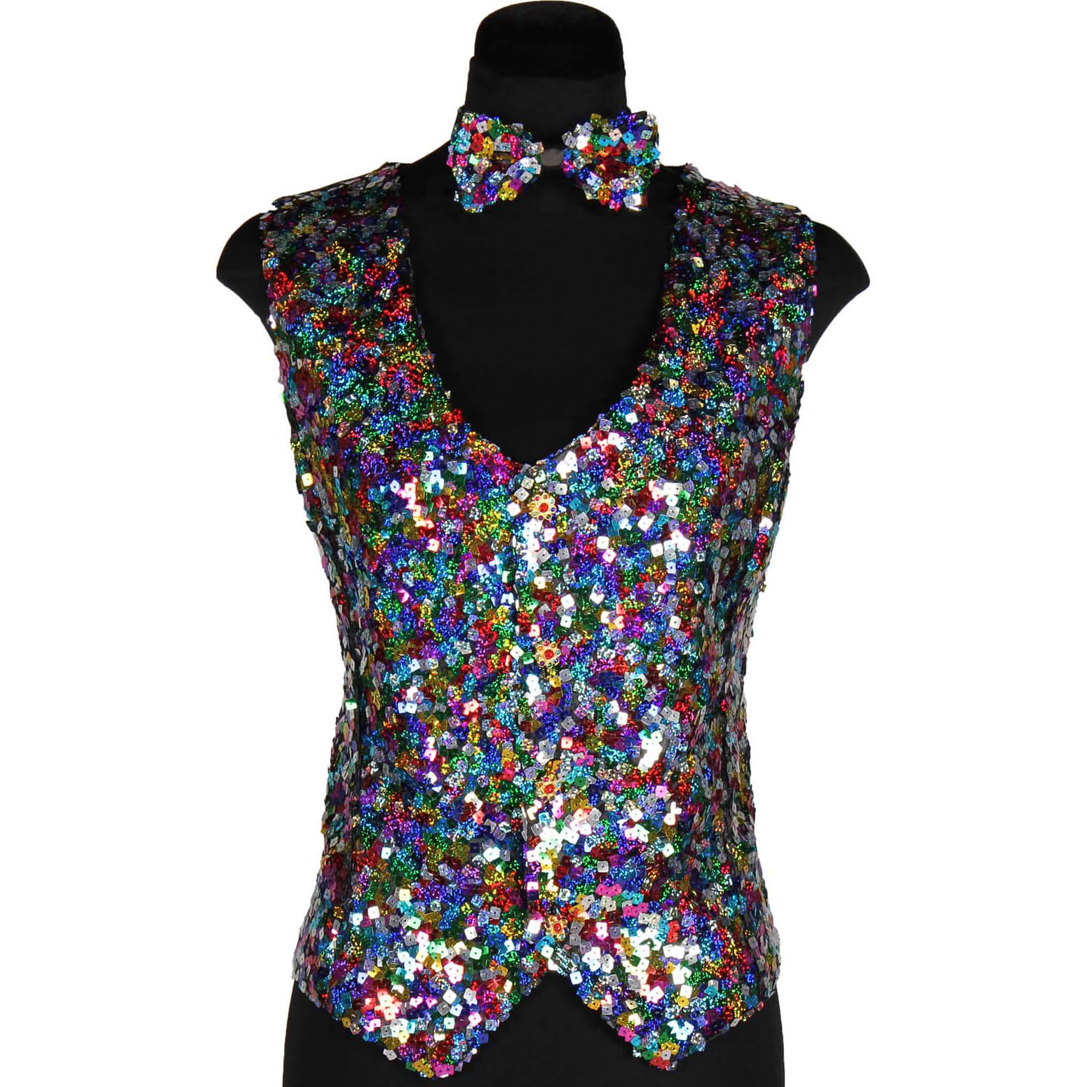 Show Pailletten Weste mit Fliege und quadratischen Pailletten für Damen bunt