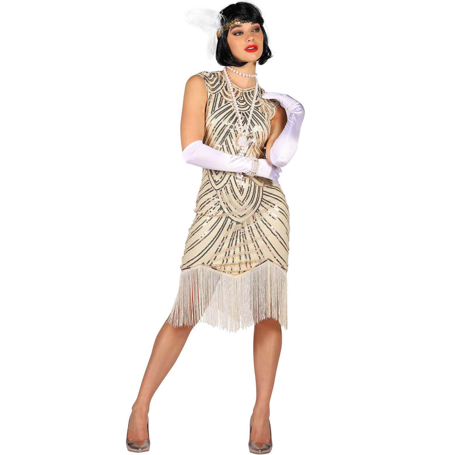 20er Jahre Charlestonlady Kostüm Kleid halblang Deluxe FOXTROTT creme – (ARTIKEL/REFERNZ: 8717653384884/TT4102XL – Kategorie/Suche: – Hersteller: Thetru BV)