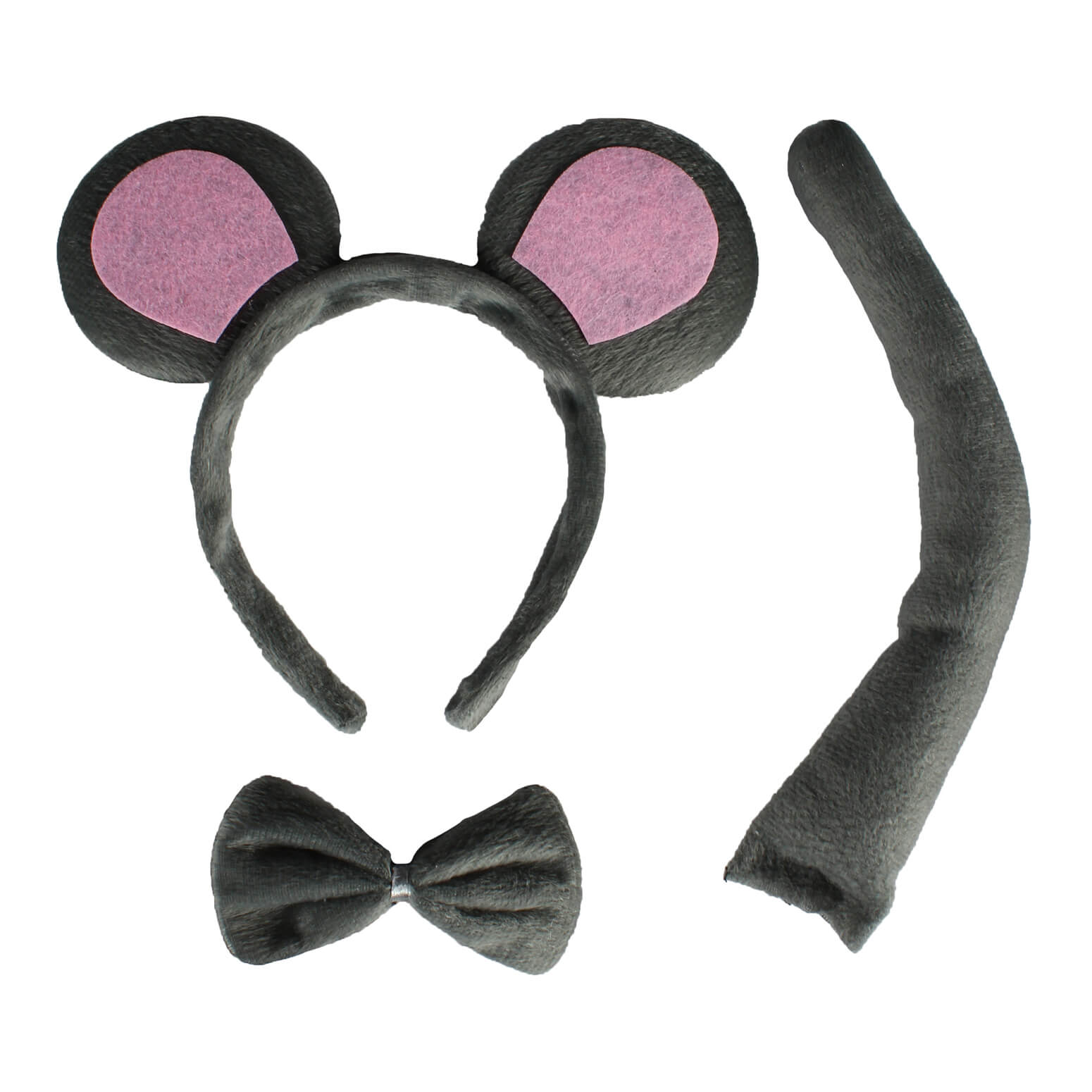 Maus Haarreif mit Ohren+Fliege+Schwanz Set aus Velours grau-rosa – (ARTIKEL/REFERNZ: 8717653386932/TT4124Onesi – Kategorie/Suche: Mäuse – Hersteller: Thetru BV)